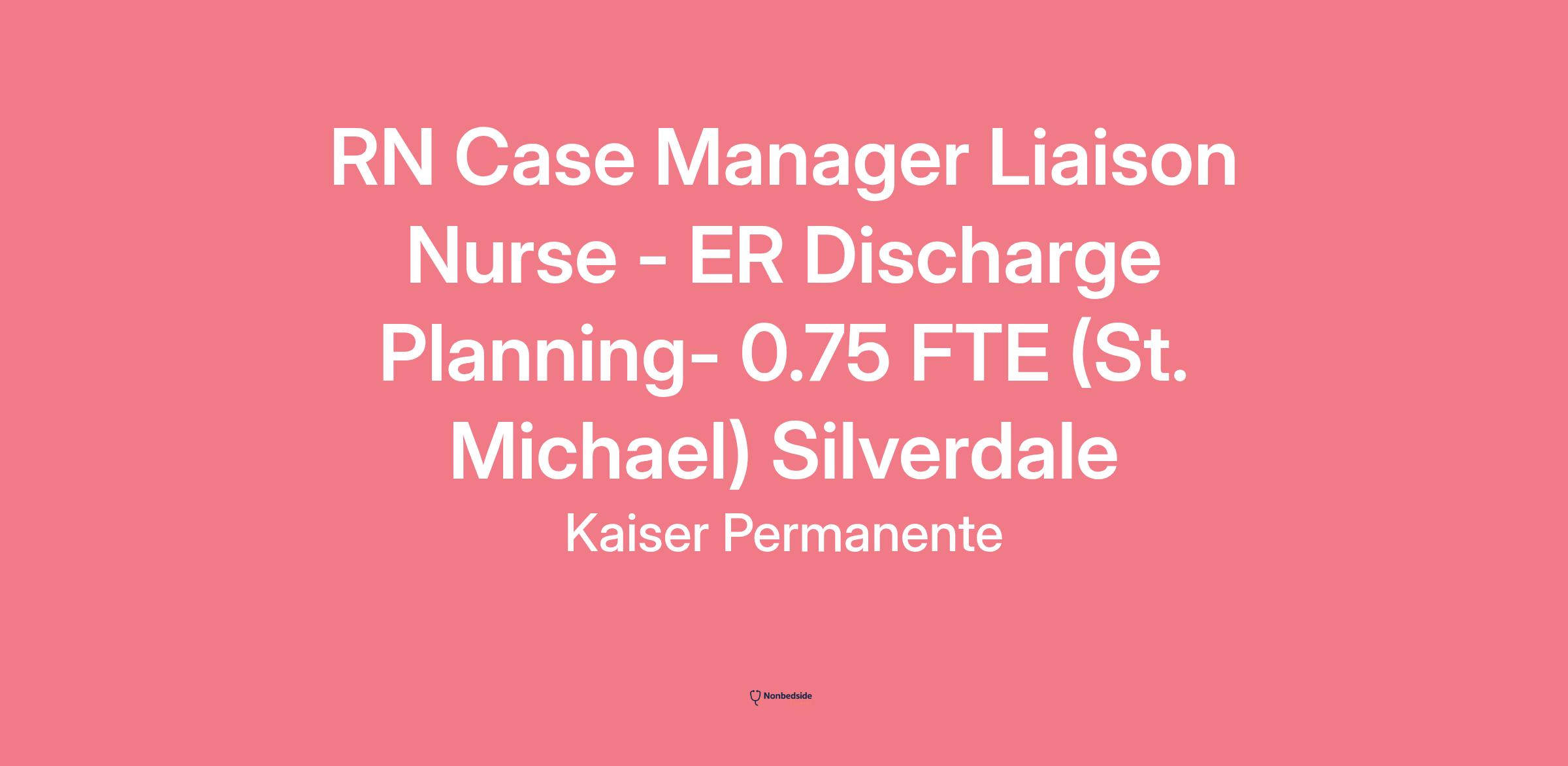 RN CASE MANAGER LIAISON NURSE - EMERGENCY ROOM DISCHARGE PLANNING - ONSITE: ST. MICHAEL ER/ED - SILVERDALE WA