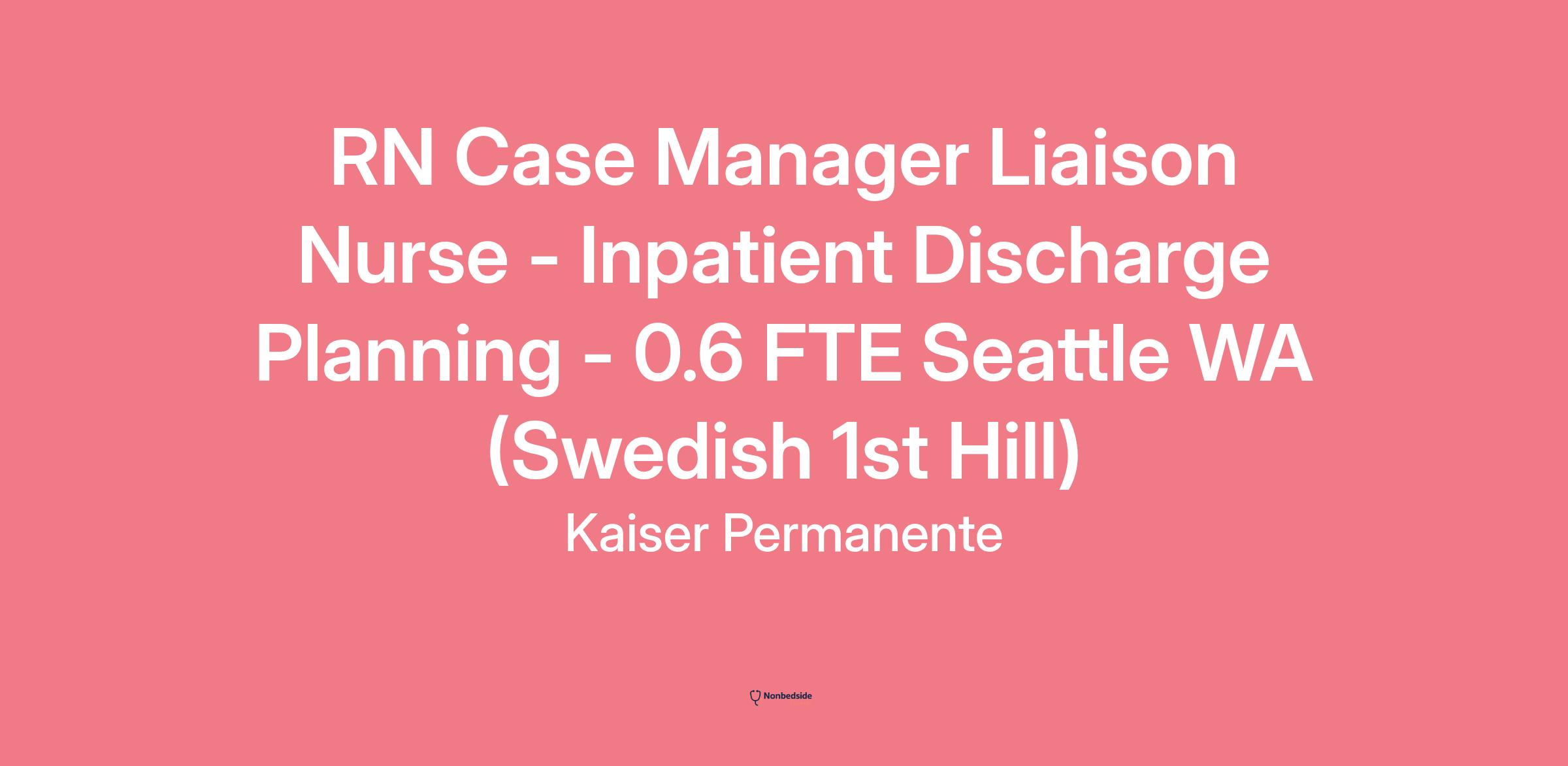 RN CASE MANAGER LIAISON NURSE - INPATIENT DISCHARGE PLANNING - ONSITE: SWEDISH FIRST HILL