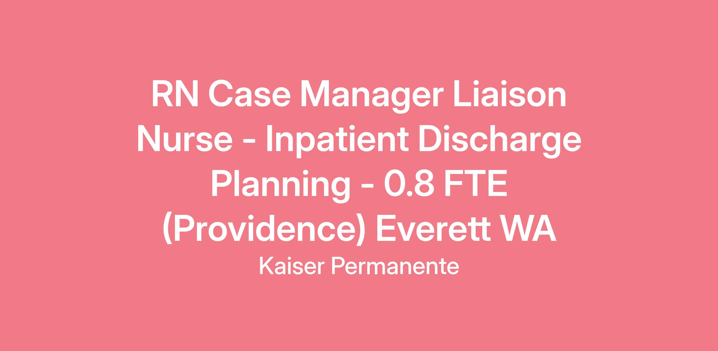 RN CASE MANAGER LIAISON NURSE - INPATIENT DISCHARGE PLANNING - ONSITE: PROVIDENCE - EVERETT