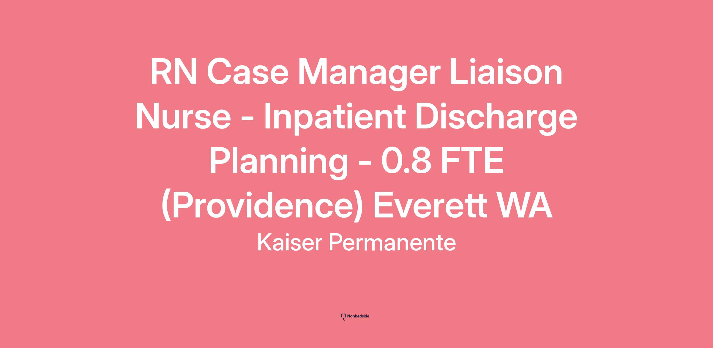 RN CASE MANAGER LIAISON NURSE - INPATIENT DISCHARGE PLANNING - ONSITE: PROVIDENCE - EVERETT