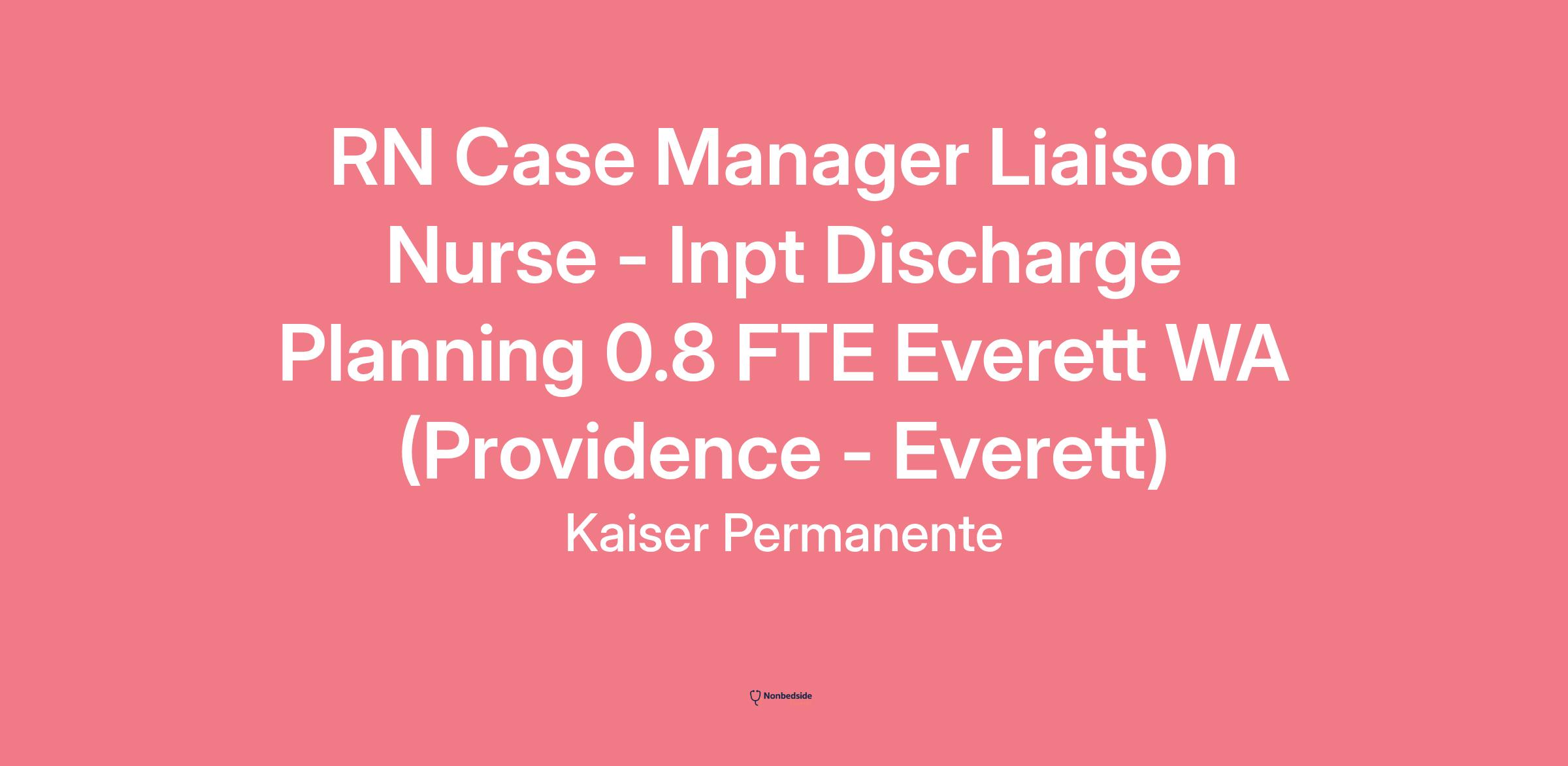 RN Case Manager Liaison Nurse - Inpt Discharge Planning 0.8 FTE Everett WA (Providence - Everett)