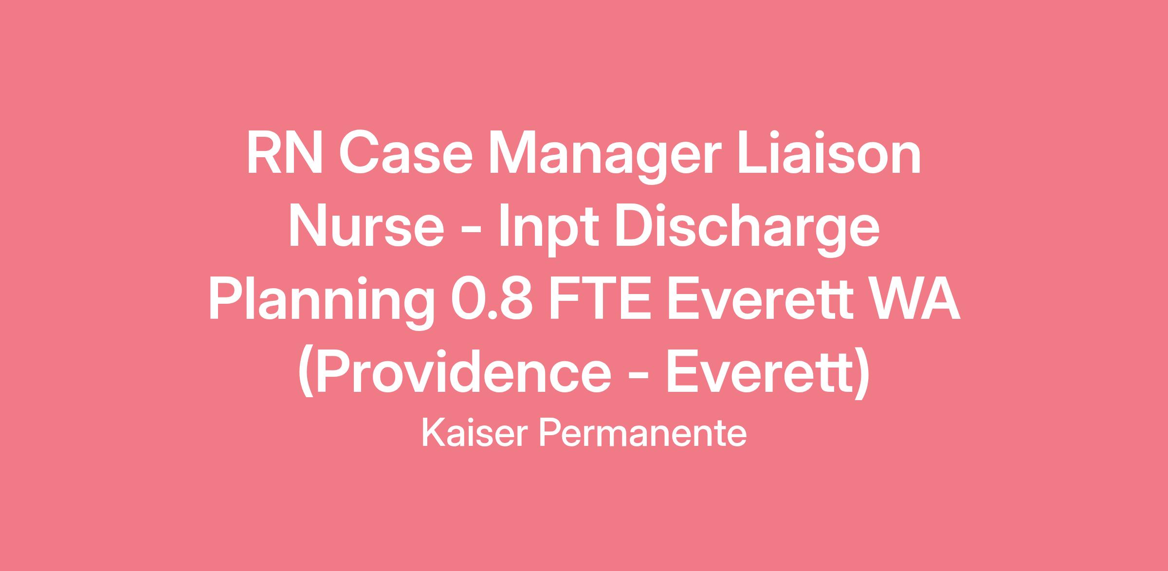 RN Case Manager Liaison Nurse - Inpt Discharge Planning 0.8 FTE Everett WA (Providence - Everett)