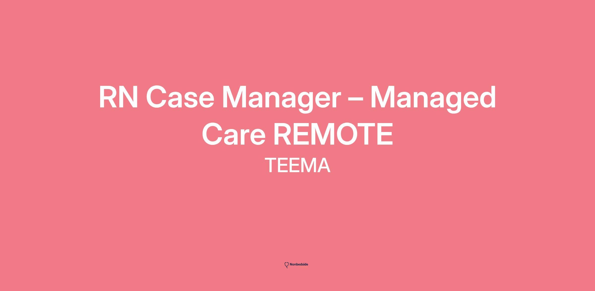 Join to apply for the RN Case Manager – Managed Care REMOTE role at TEEMA