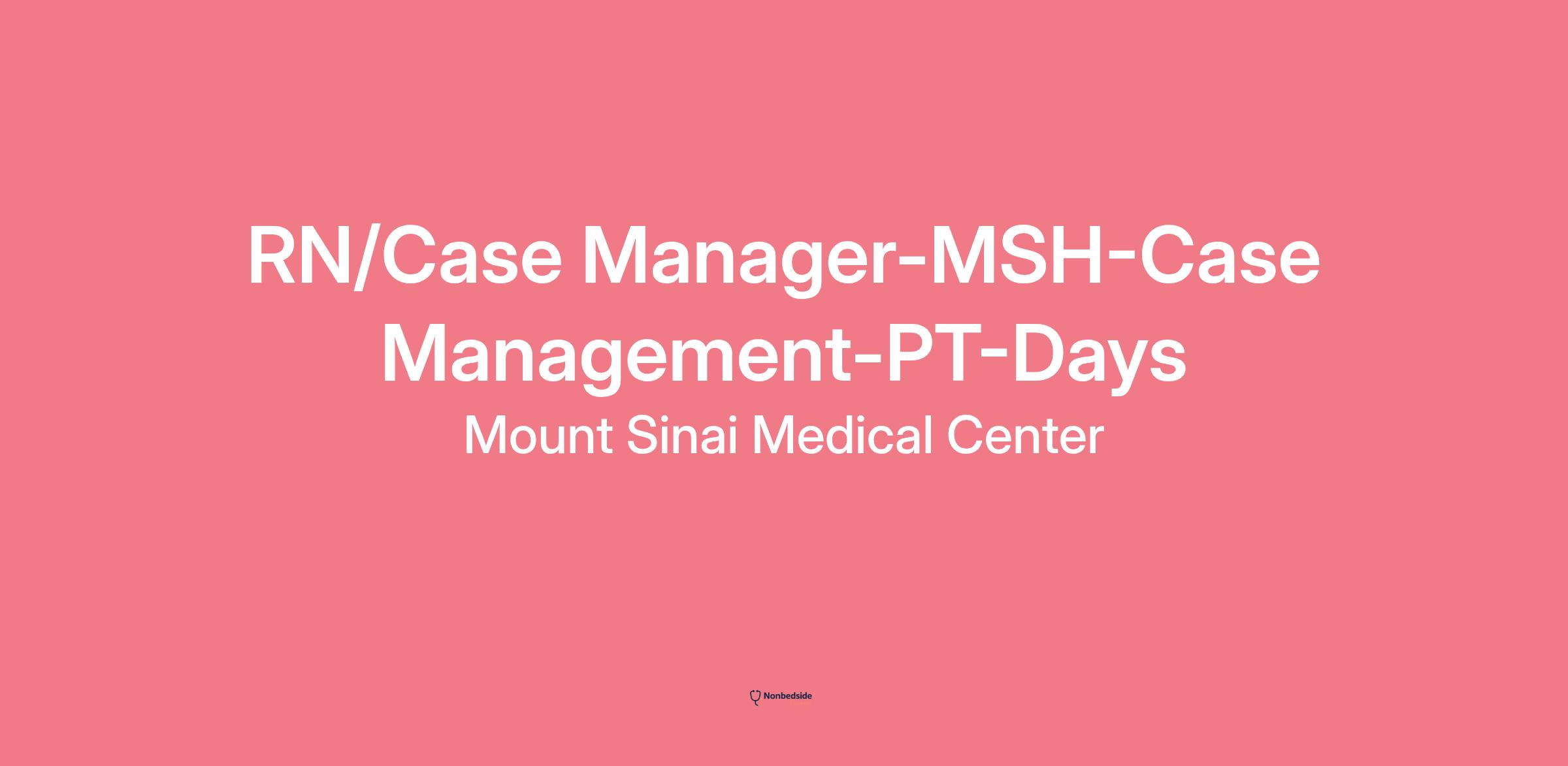 RN/Case Manager MSH Case Management PT Days