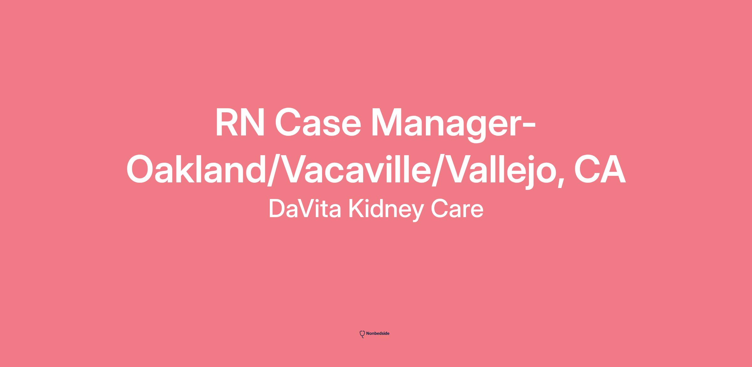 RN Case Manager-Oakland/Vacaville/Vallejo, CA Join to apply for the RN Case Manager-Oakland/Vacaville/Vallejo, CA role at DaVita Kidney Care