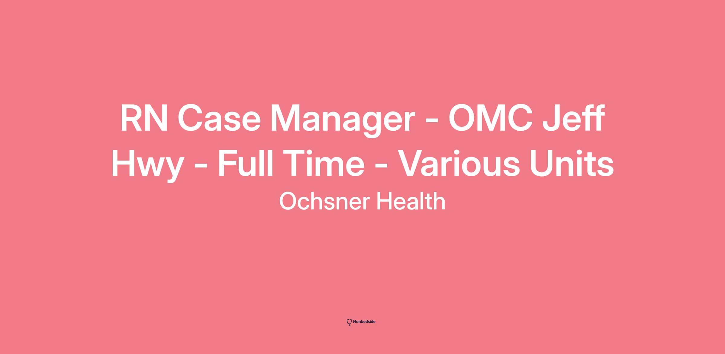 Ochsner is an equal opportunity employer. All qualified applicants will receive consideration without regard to protected classes.