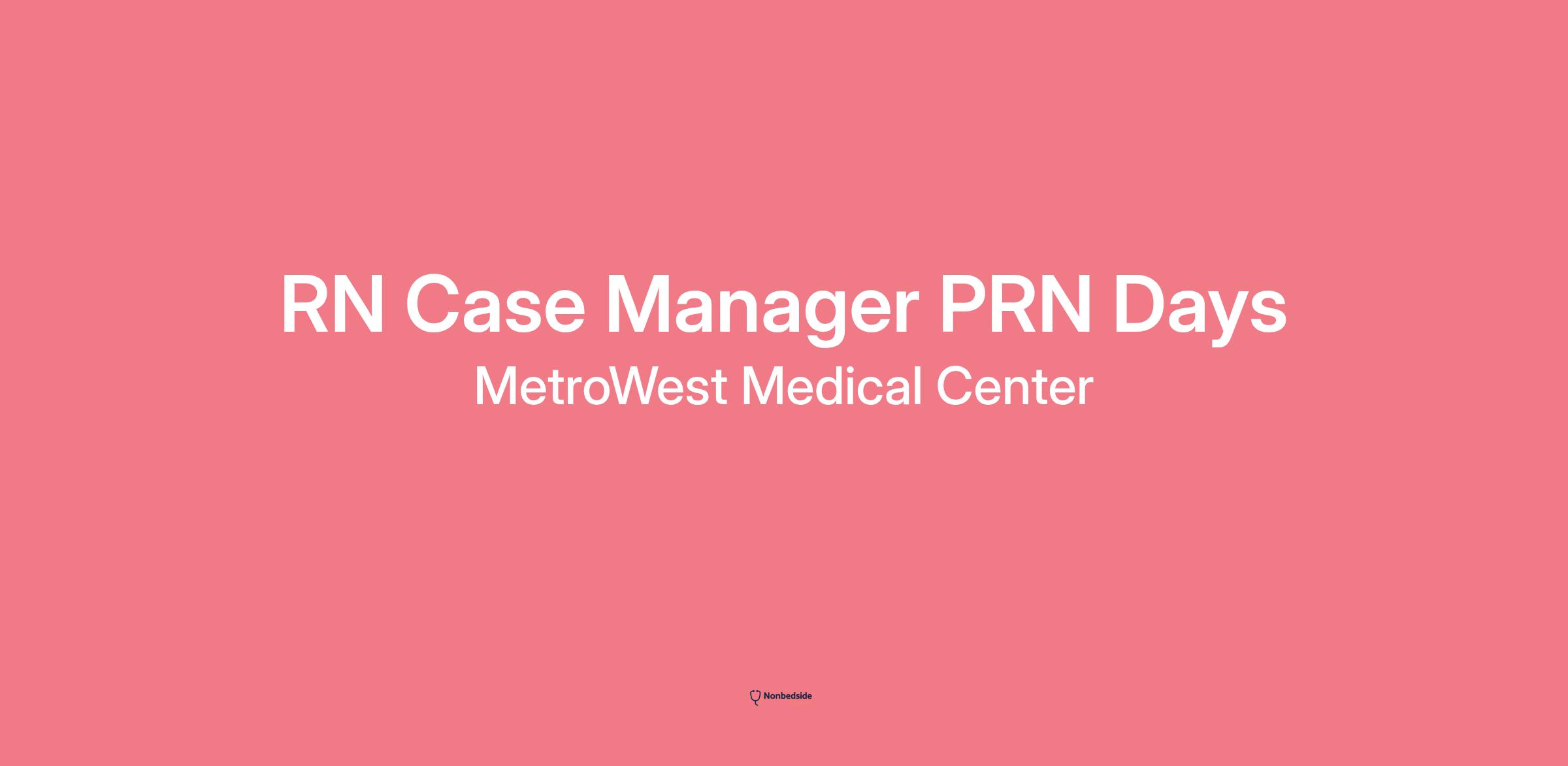 Join to apply for the RN Case Manager PRN Days role at MetroWest Medical Center