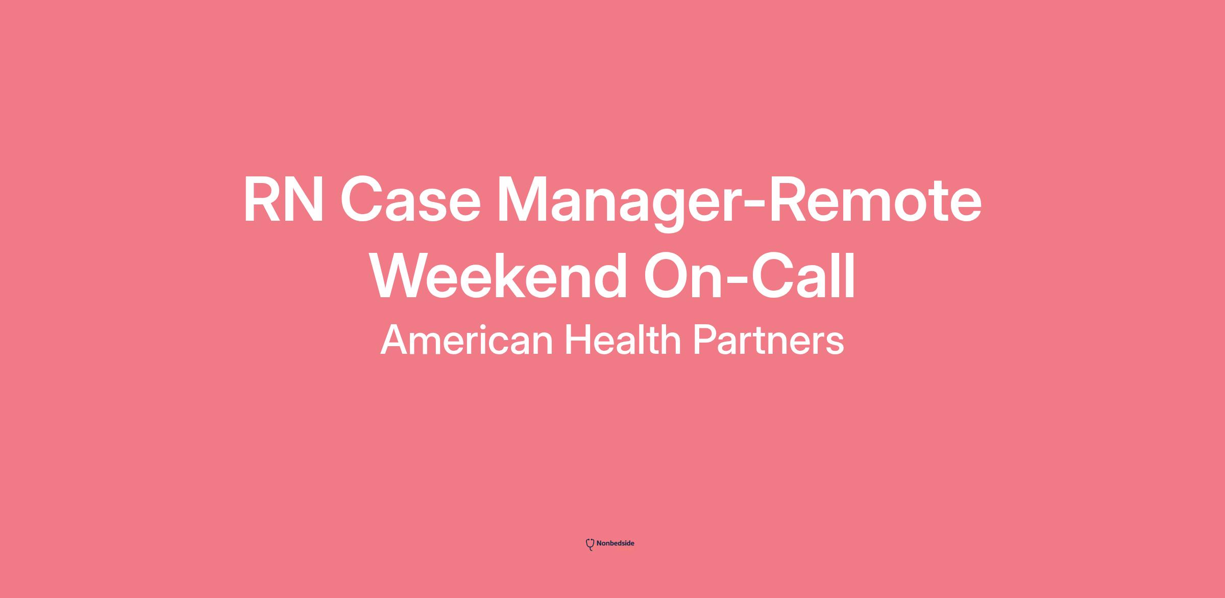 Join to apply for the RN Case Manager-Remote Weekend On-Call role at American Health Partners . Apply now – only a few slots available!