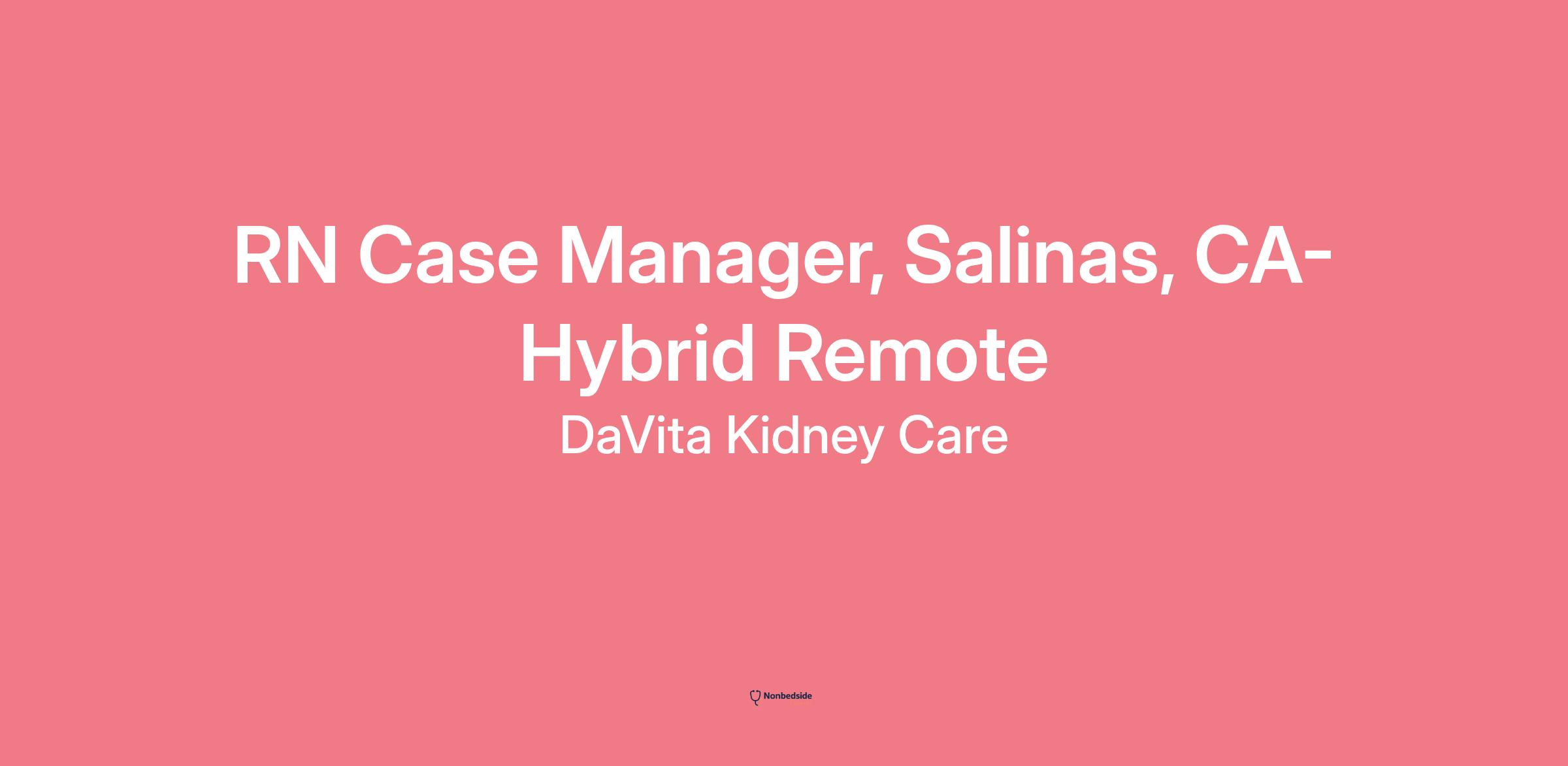 DaVita Integrated Kidney Care (IKC) is looking for a Full-Time RN Case Manager (RN) to join us in Salinas, CA region. Must live locally.