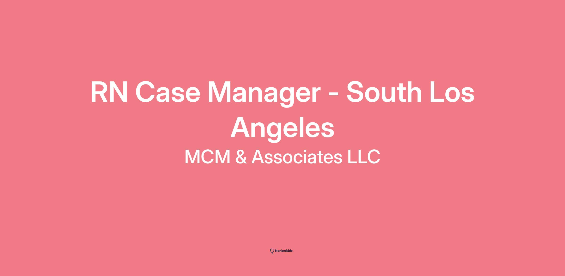 About the job RN Case Manager - South Los Angeles