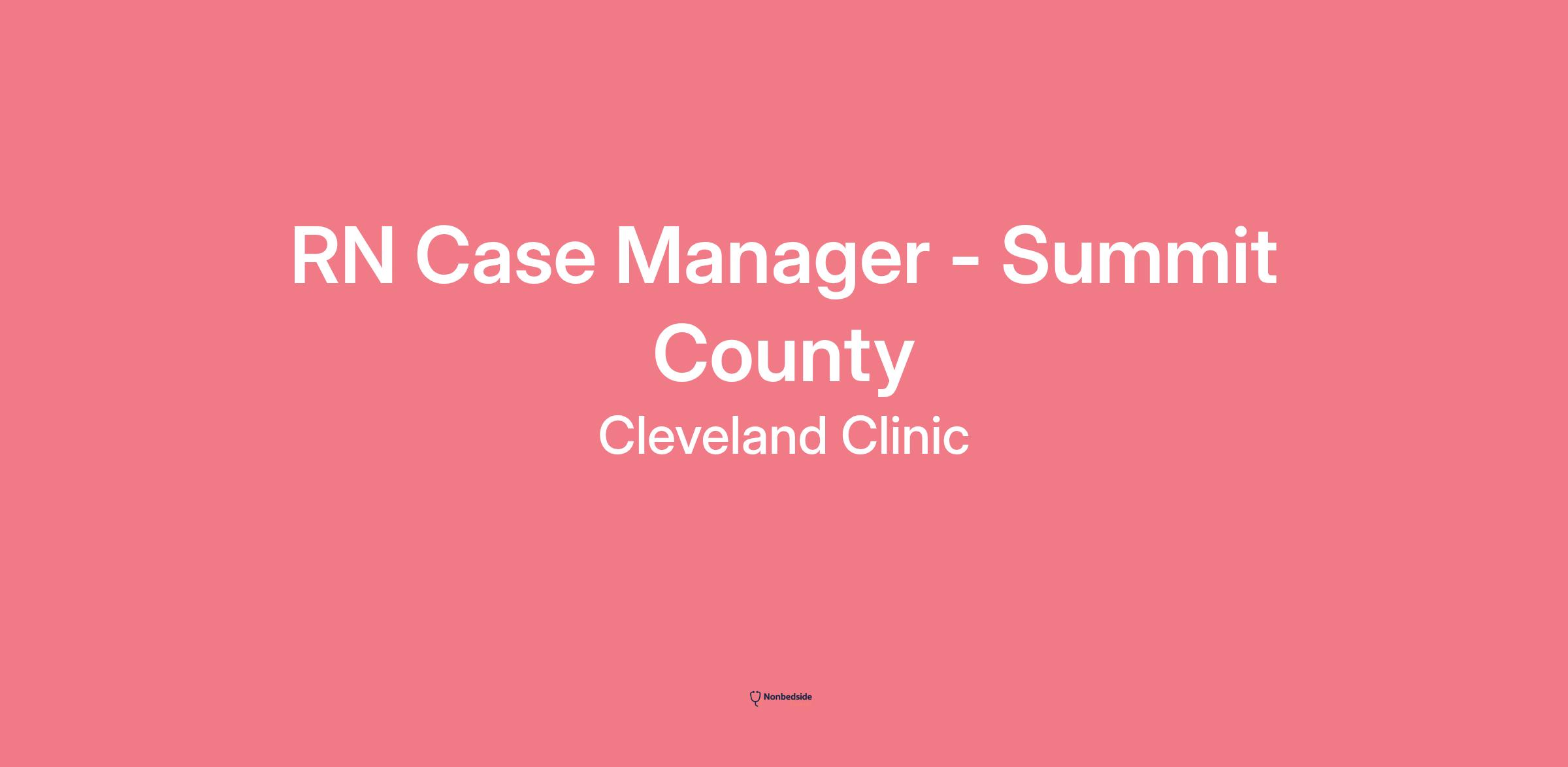 Overview Join to apply for the RN Case Manager - Summit County role at Cleveland Clinic .