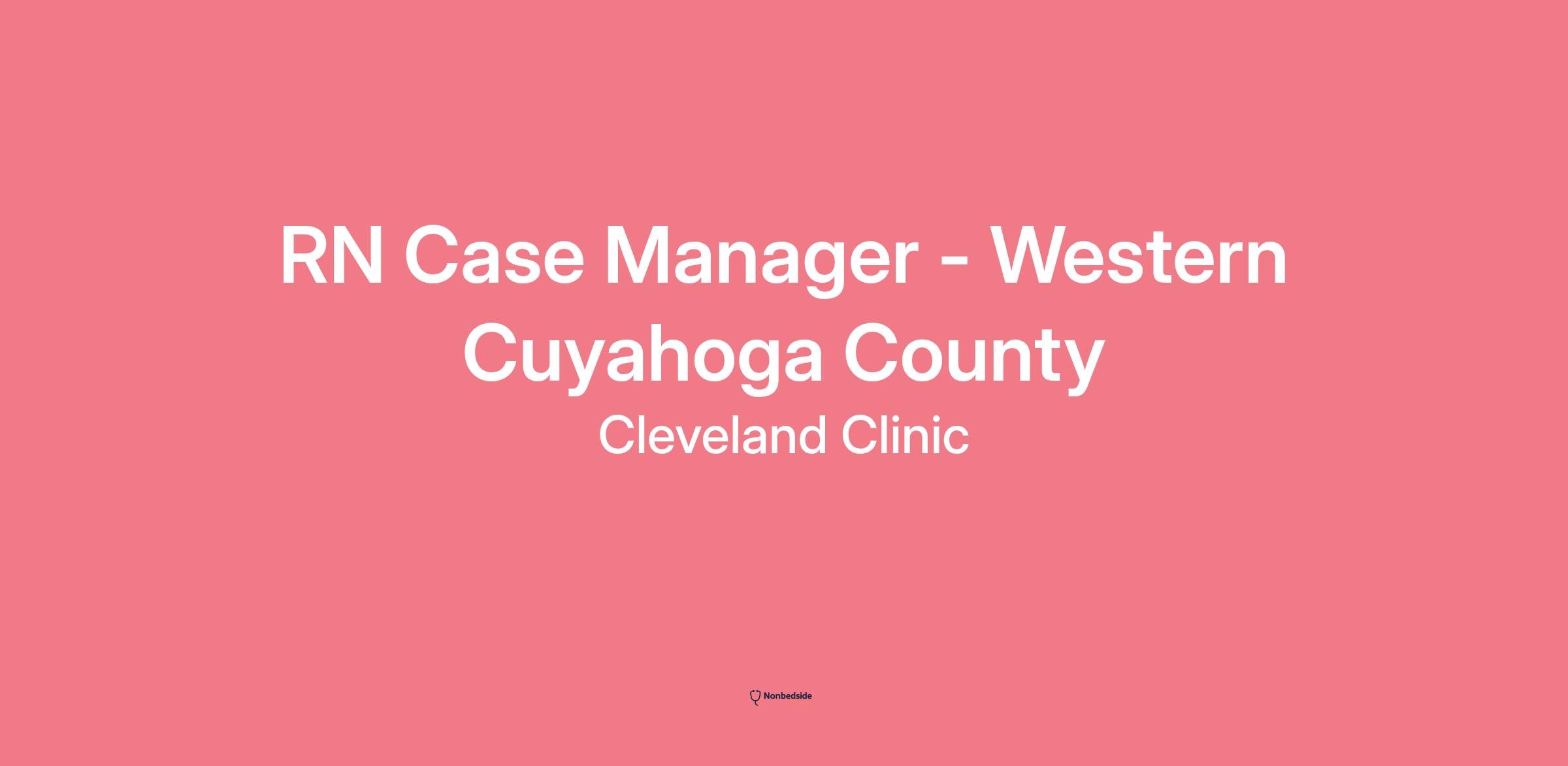 Join to apply for the RN Home Health Case Manager - Western Cuyahoga County role at Cleveland Clinic
