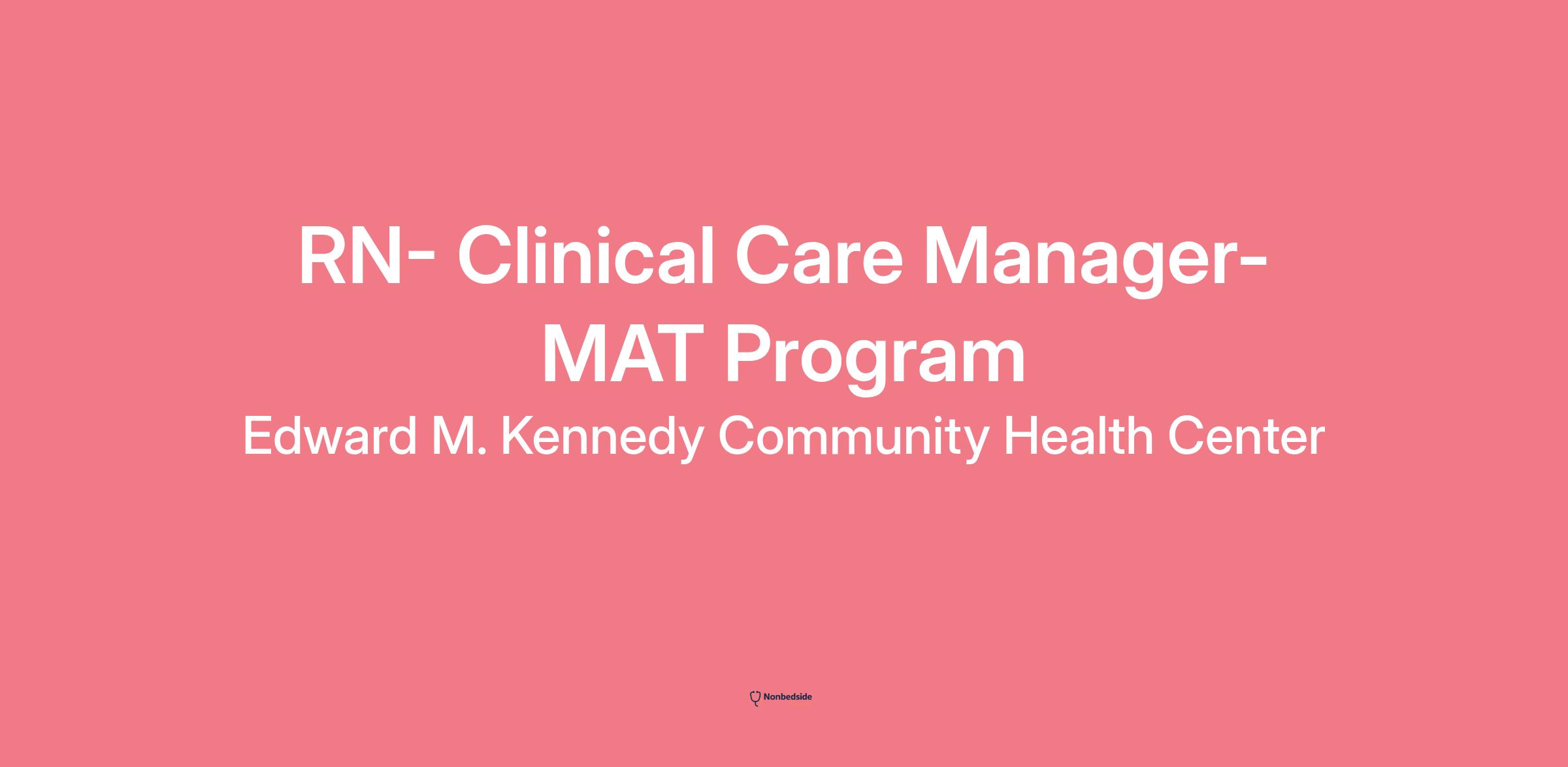*This position requires a Massachusetts Nursing License* Edward M. Kennedy Community Health Center is one of the largest community health centers in Massachusetts serving Worcester, Framingham, Milford, and the surrounding communities. We are a thriving and growing organization, and our team is expanding across sites to support this growth. We are currently hiring a Clinical Care Manager – OBAT RN based in Framingham. As part of a team-based approach to care, the Clinical Care Manager (CCM) provides, coordinates, and organizes evidence-based care management to Medical Assistant Treatment Program (MAT) patients.
