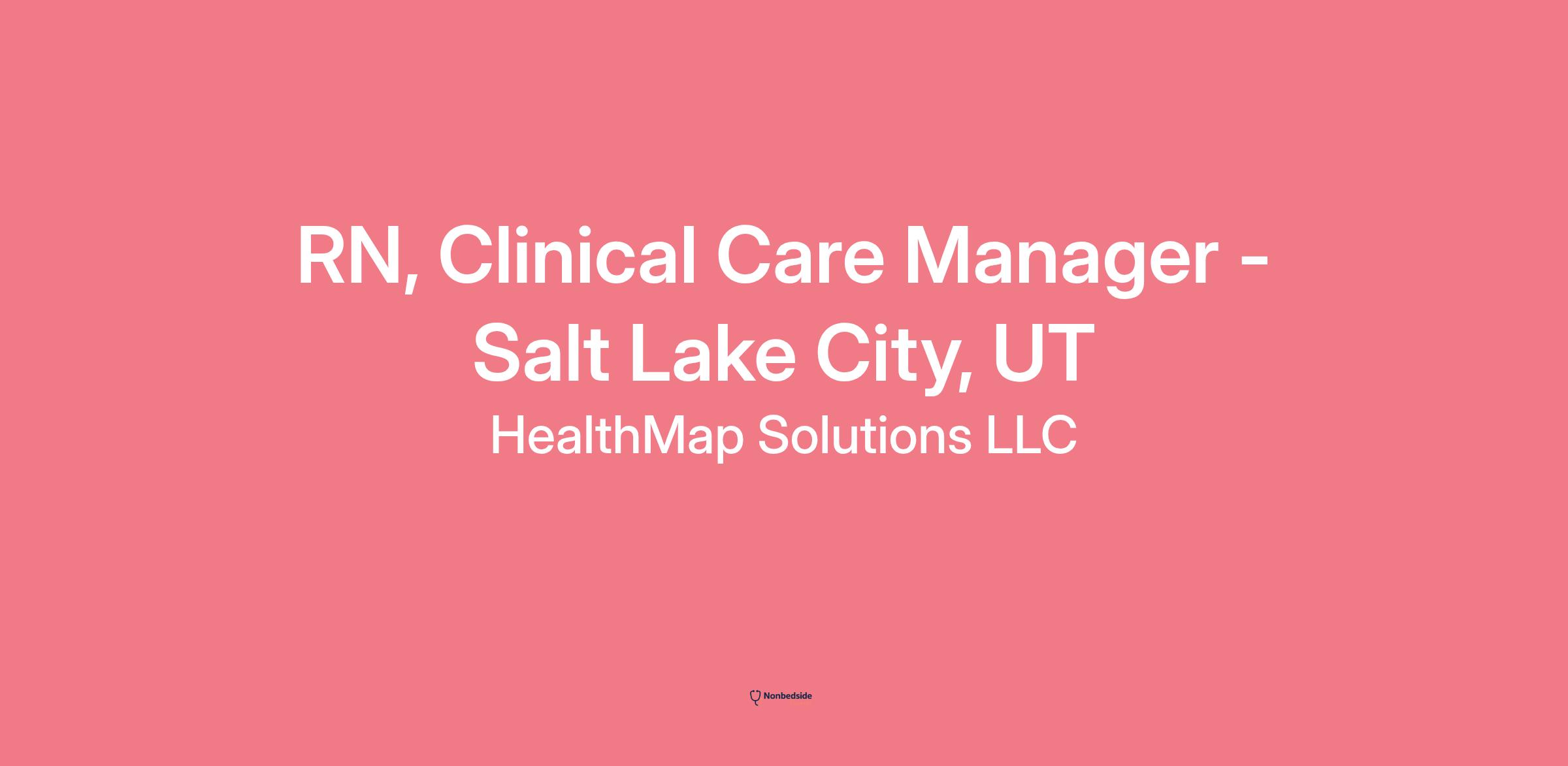 RN, Clinical Nurse Liaison - Salt Lake City, UT Join to apply for the RN, Clinical Nurse Liaison - Salt Lake City, UT role at Healthmap Solutions