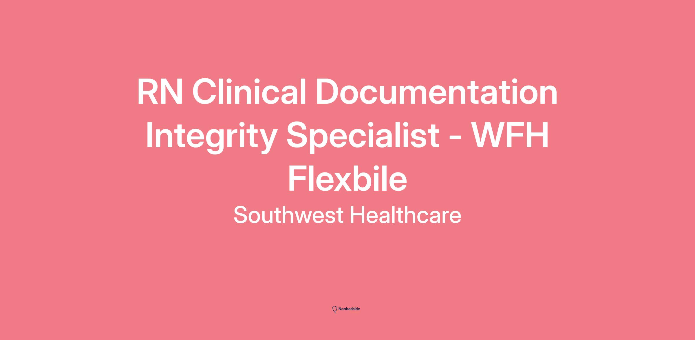 RN Clinical Documentation Integrity Specialist - WFH Flexible Join to apply for the RN Clinical Documentation Integrity Specialist - WFH Flexible role at Southwest Healthcare