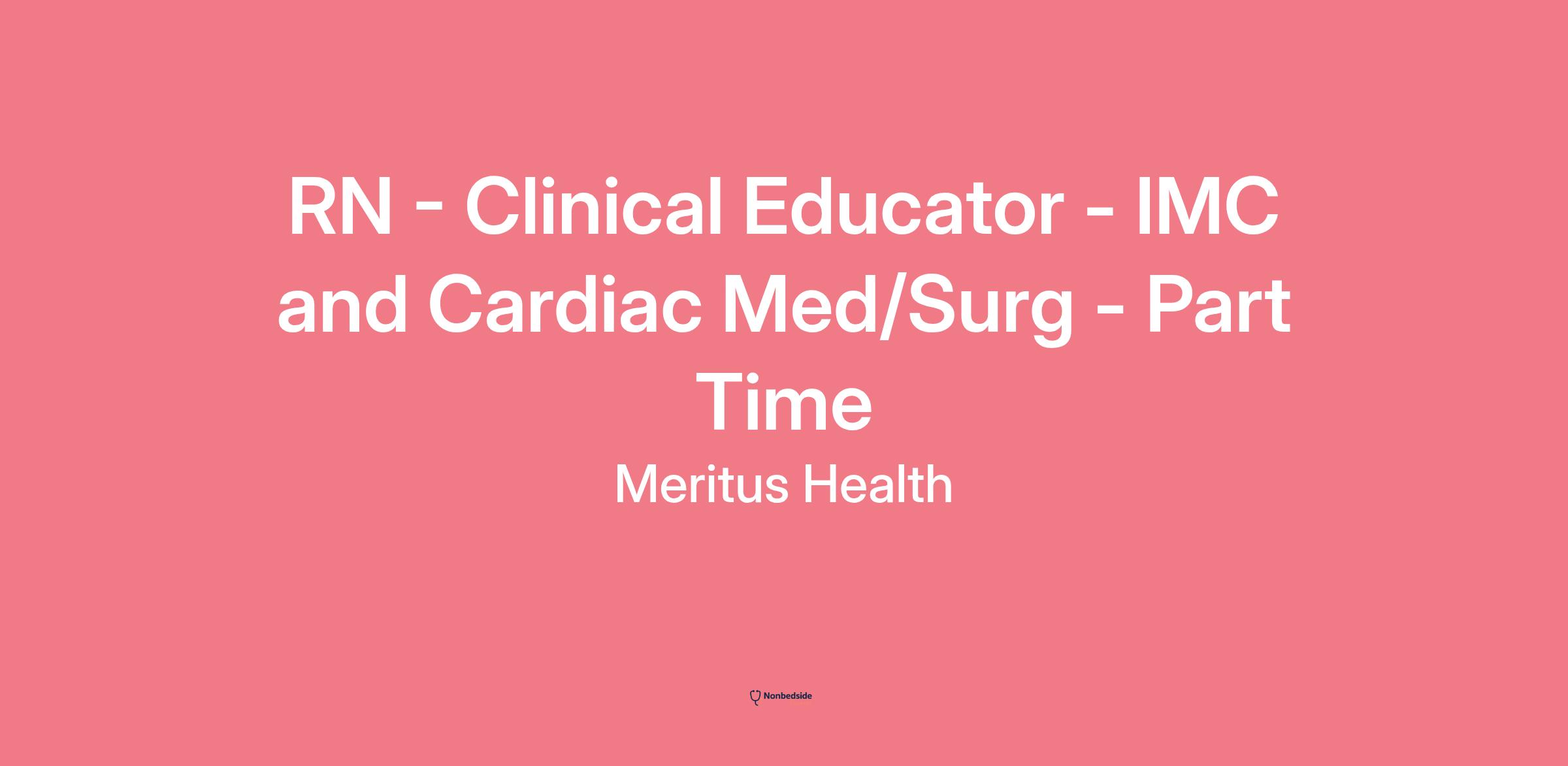 RN - Clinical Educator - Intermediate Care Unit and Med Surg/Cardiac Part Time - 40hrs. Biweekly