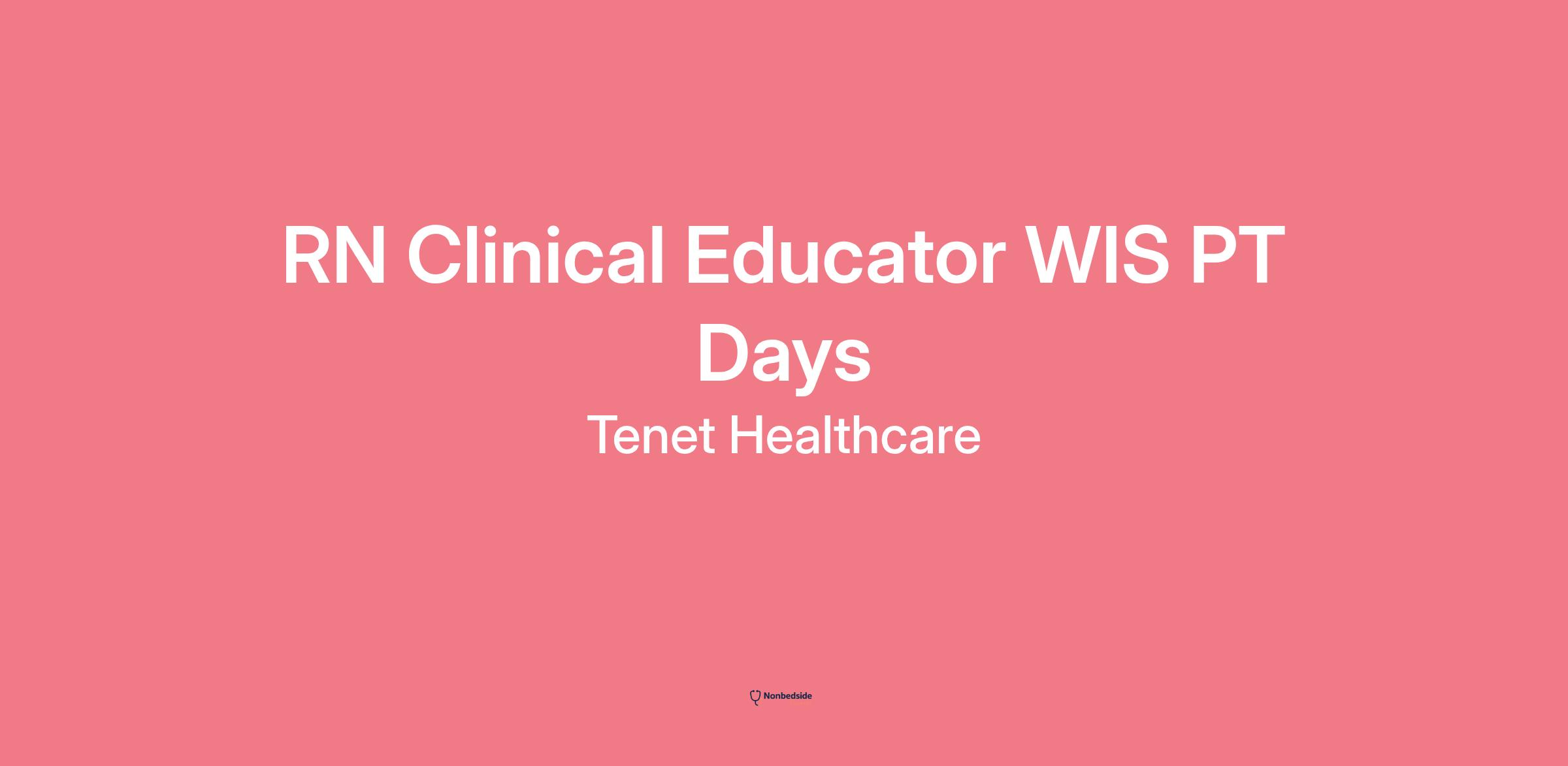 Overview RN Clinical Educator WIS PT Days. Up to $5,000 bonus based on eligibility.