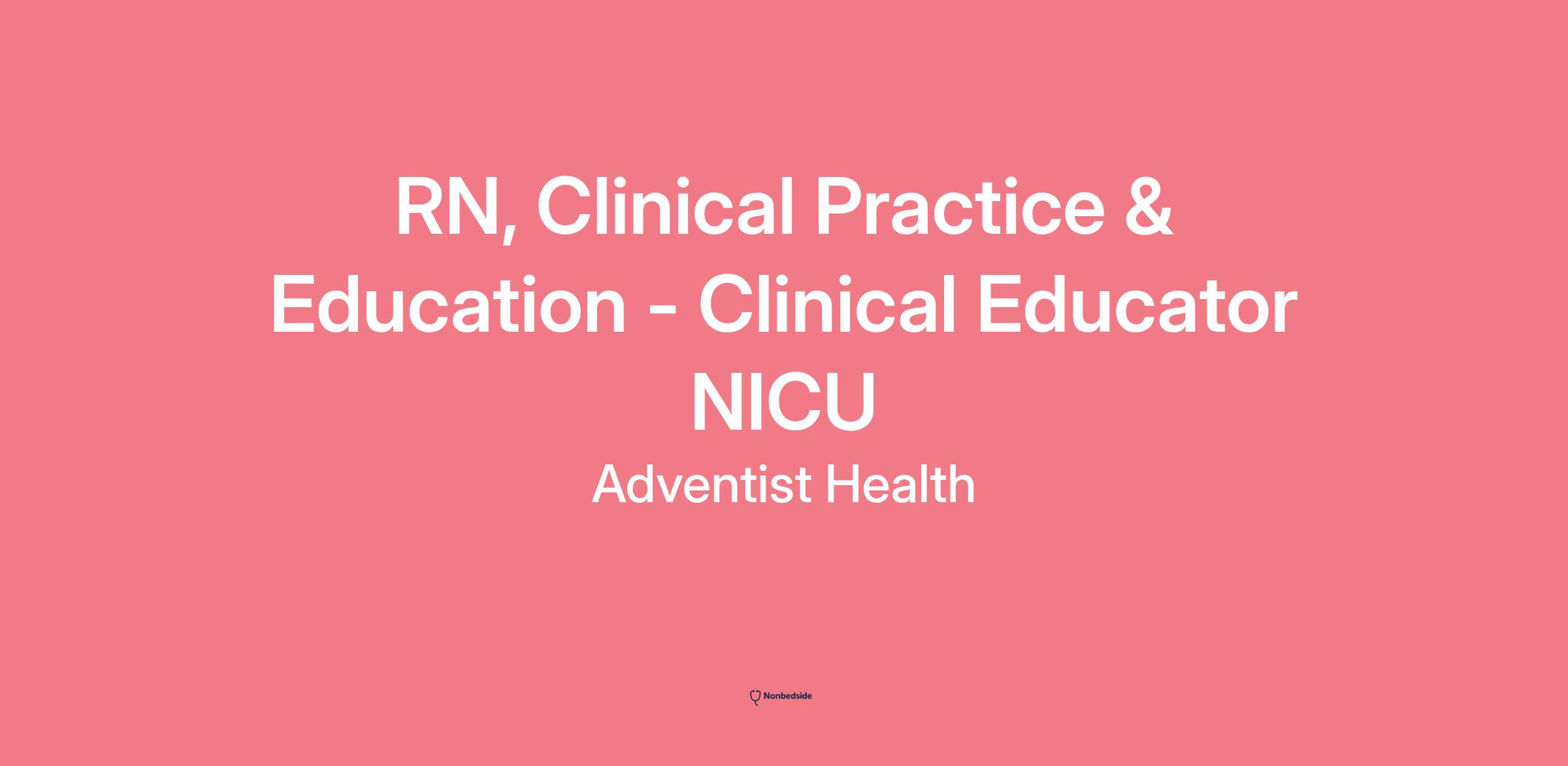 RN, Clinical Practice & Education - Clinical Educator NICU Join to apply for the RN, Clinical Practice & Education - Clinical Educator NICU role at Adventist Health