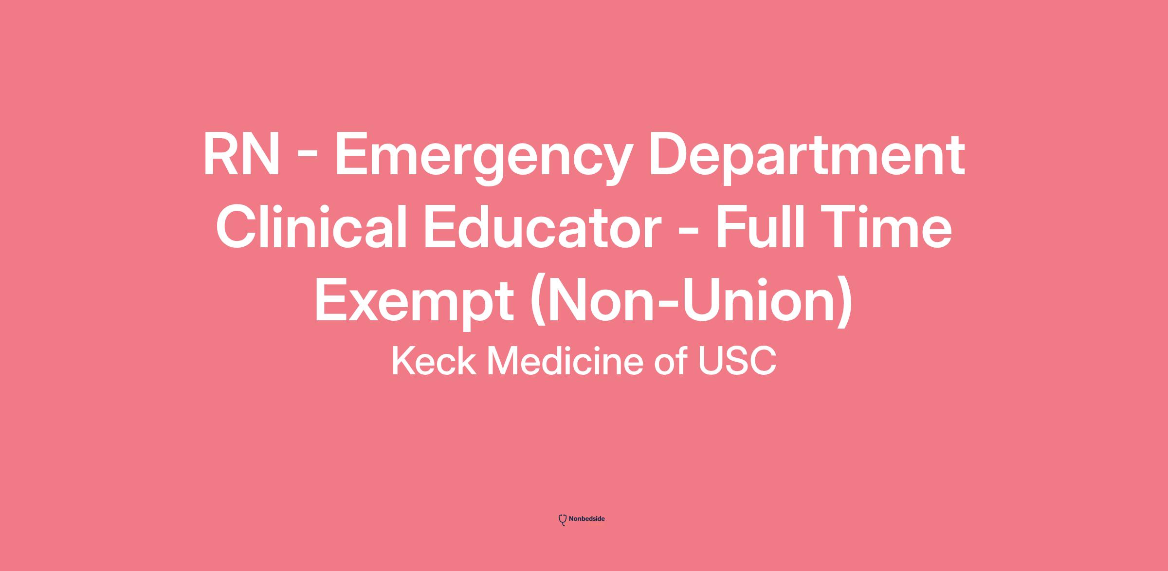 RN - Emergency Department Clinical Educator - Full Time Exempt (Non-Union) Join to apply for the RN - Emergency Department Clinical Educator - Full Time Exempt (Non-Union) role at Keck Medicine of USC