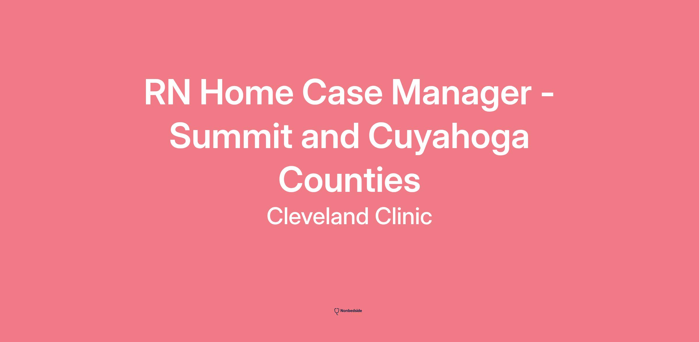Join the Cleveland Clinic team as an RN Home Case Manager serving Summit and Cuyahoga Counties. This role involves providing patient‑first home health nursing care, including assessments, complex nursing treatments, education, and coordinating patient care to help avoid readmissions to acute care settings. The Home Health RNs work remotely after patient visits to complete documentation, make calls, attend meetings, coordinate care, and arrange visit schedules. The position includes an in-depth orientation tailored to experience level and is eligible for student loan repayment.