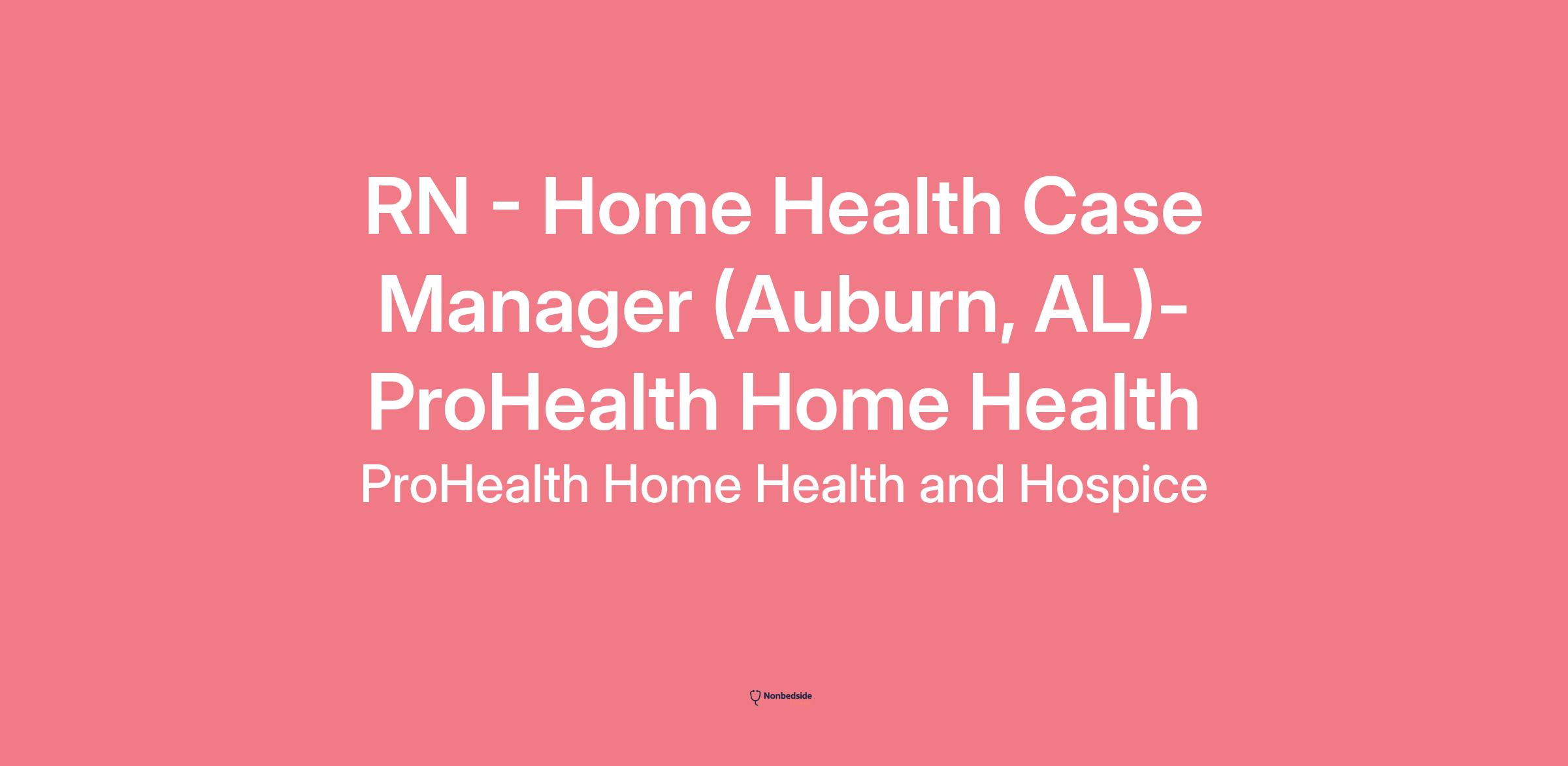 Overview Join to apply for the RN - Home Health Case Manager (Auburn, AL) - ProHealth Home Health role at ProHealth Home Health and Hospice.