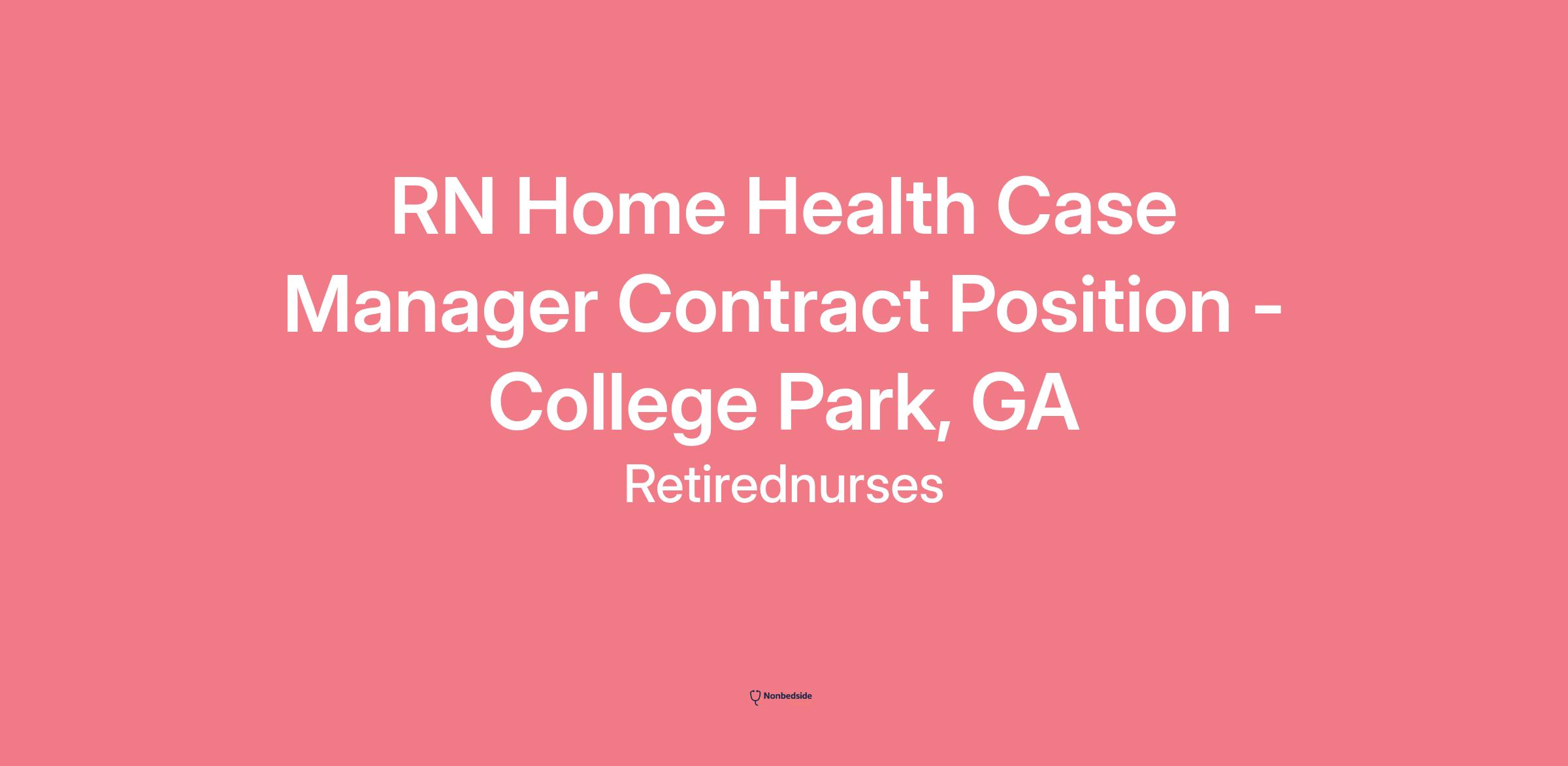 Overview Sunbelt Staffing has partnered with a home health agency in College Park, GA looking for a contract Home Health Registered Nurse. The right RN must have a valid RN License, and OASIS experience is a MUST. 1 year of geriatric home health experience and a BLS are required as well.