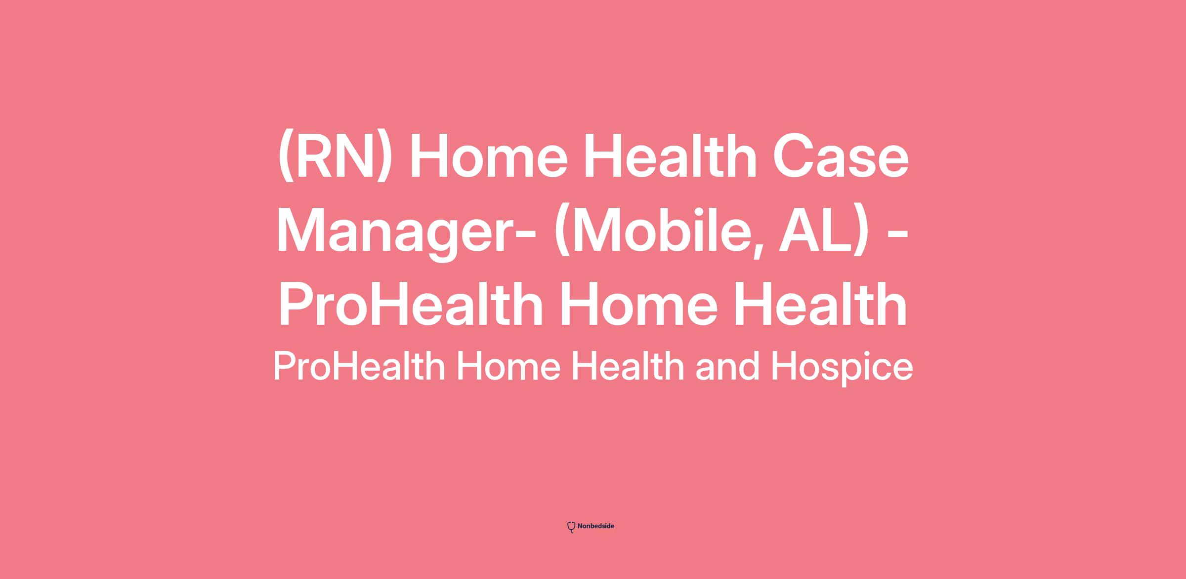 (RN) Home Health Case Manager - Mobile, AL role at ProHealth Home Health and Hospice .