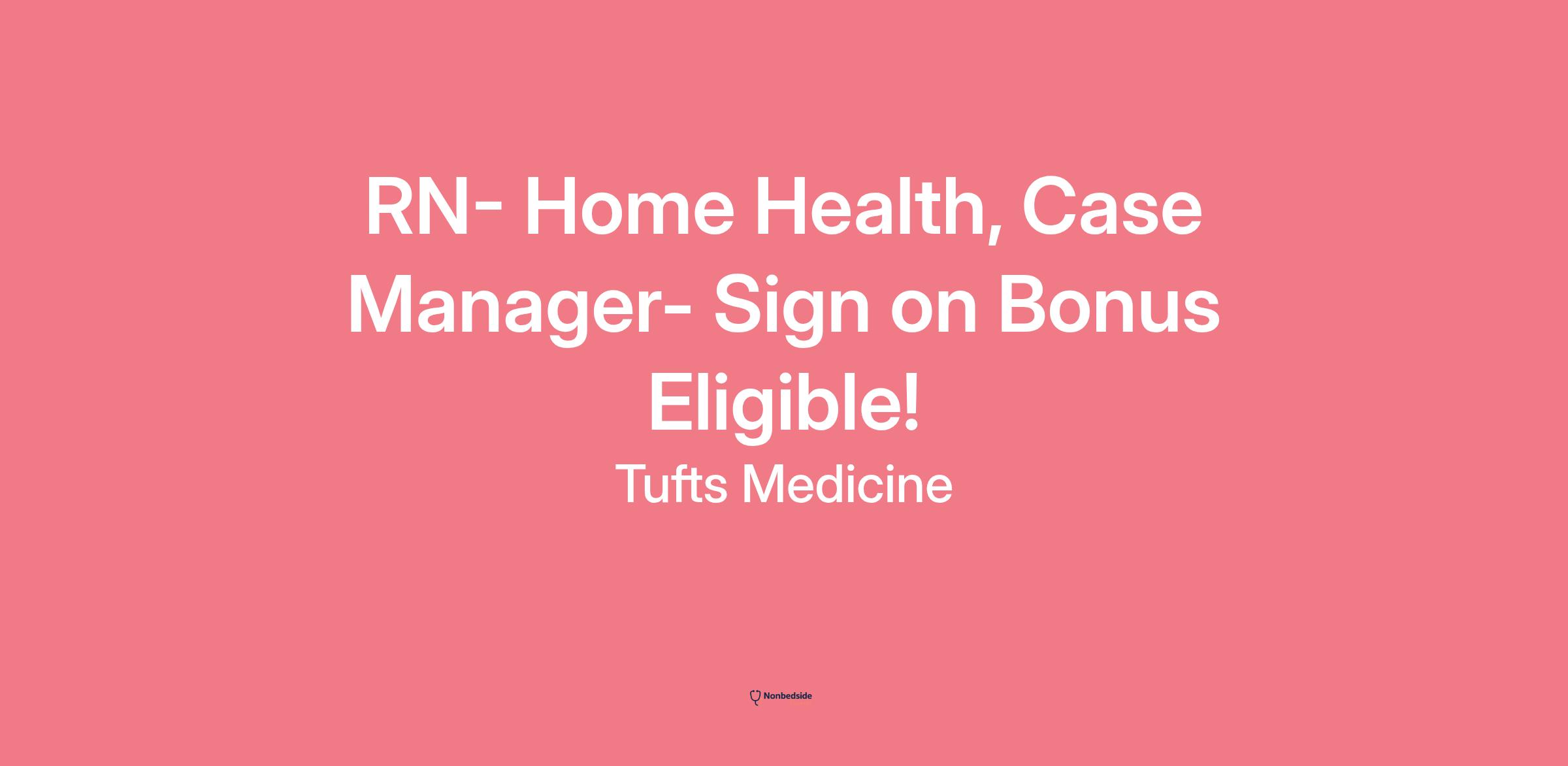 Join to apply for the RN- Home Health, Case Manager role at Tufts Medicine