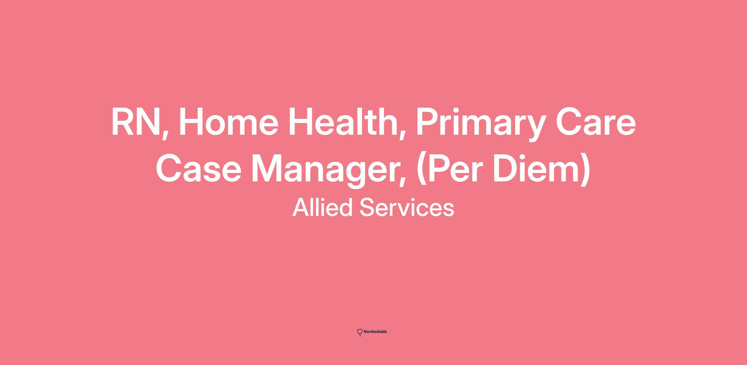 RN, Home Health, Primary Care Case Manager, (Per Diem) Join to apply for the RN, Home Health, Primary Care Case Manager, (Per Diem) role at Allied Services