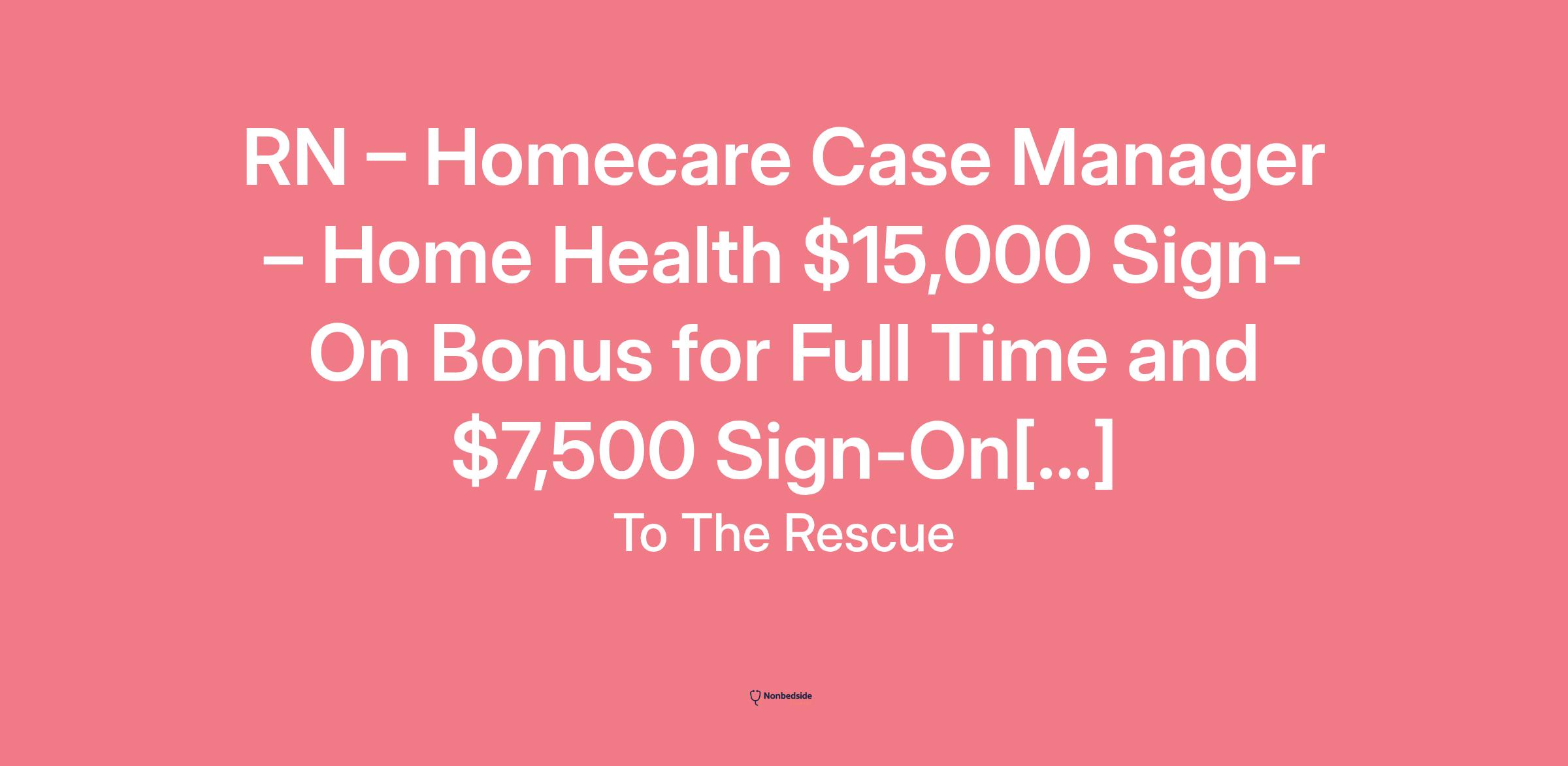 Do you have the desire to play a meaningful role in today’s healthcare industry? If so, we have the job for you. To The Rescue is looking for a full- or part-time registered nurse case manager to help our adult patients in the comfort of their own homes. Don’t limit yourself to a hospital setting when you can give care where the patient is most comfortable. And the best part, we’re offering a $15,000 sign on bonus for full time and $7,500 for part time, just for doing something you love!