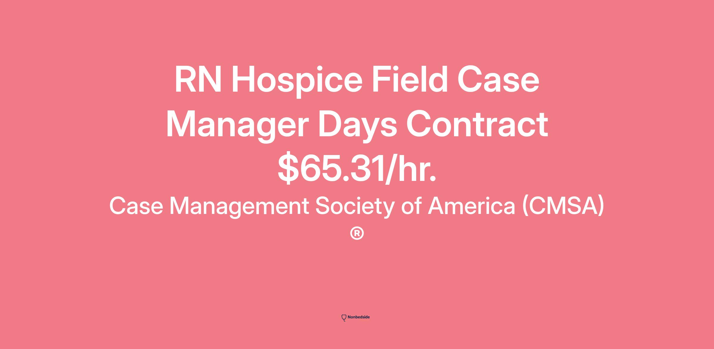 Overview Registered Nurse Field Case Manager Contract StaffFlex, Hospice-St. Thomas