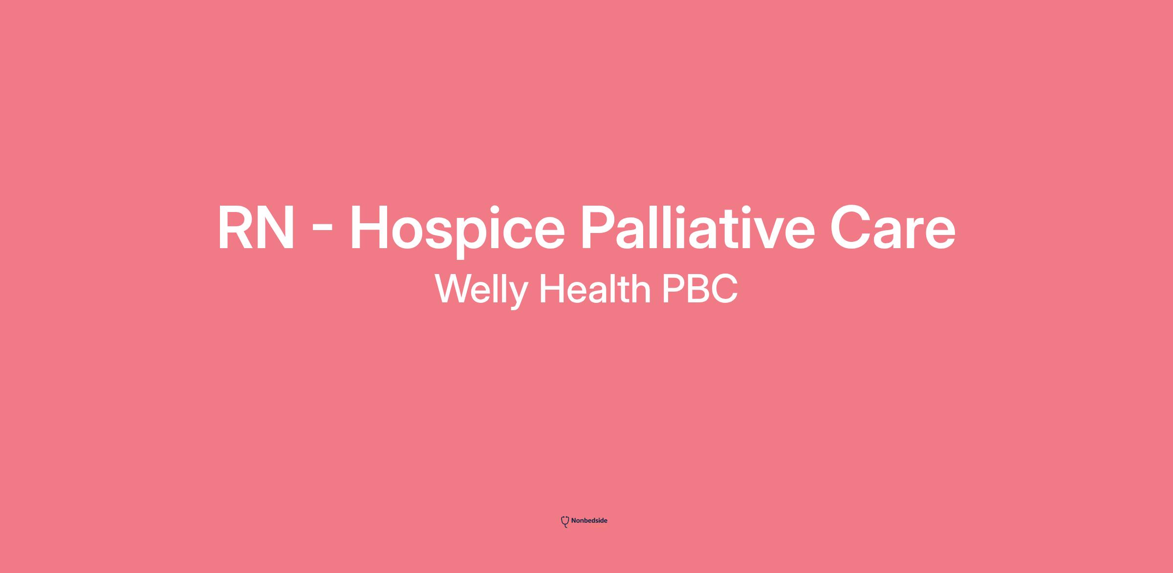 Join to apply for the RN - Hospice Palliative Care role at Welly Health PBC