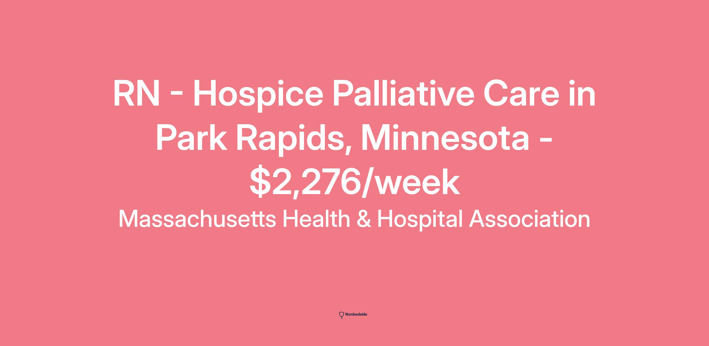RN - Hospice Palliative Care in Park Rapids, Minnesota - $2,276/week
