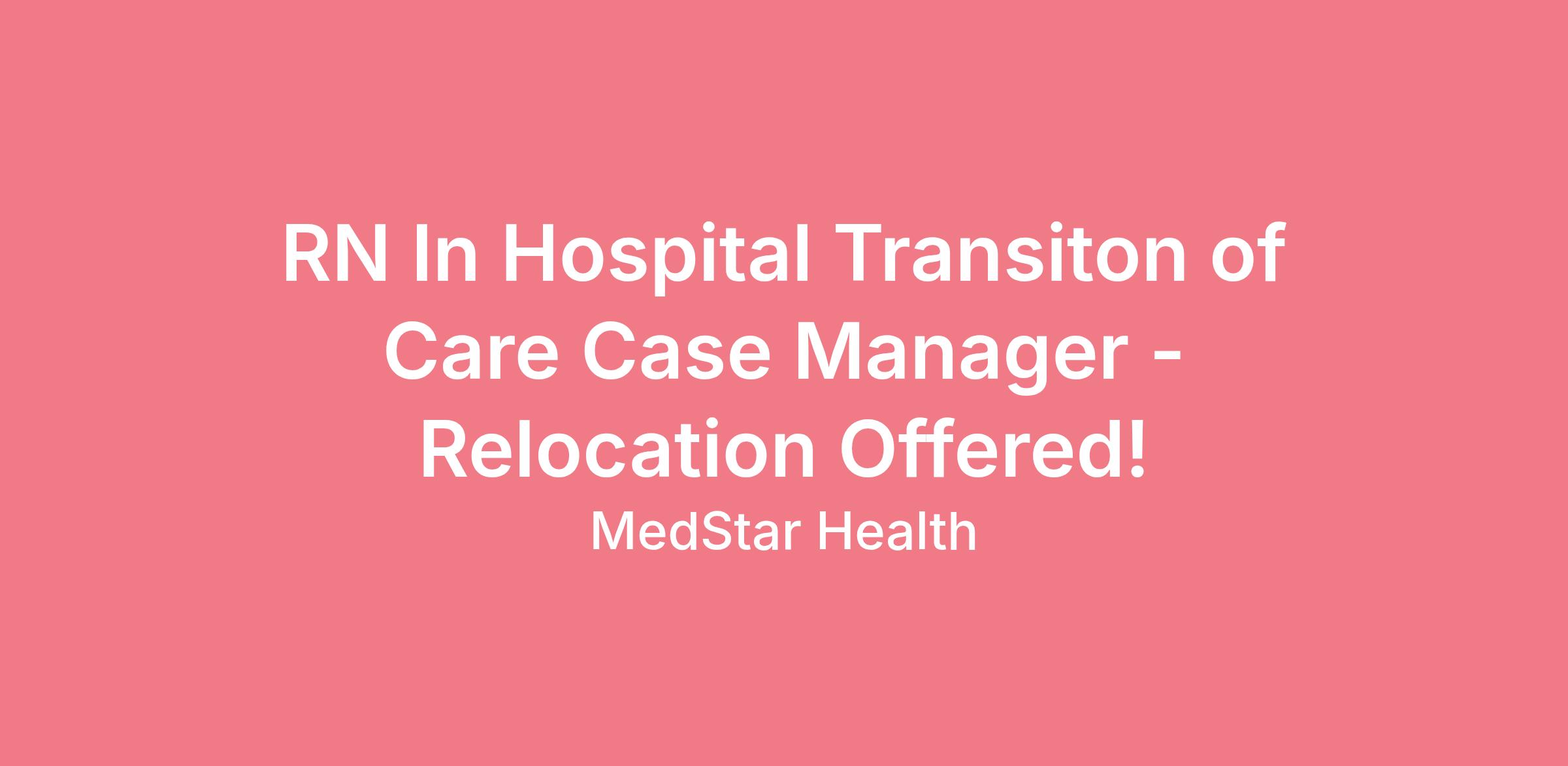 RN In Hospital Transiton of Care Case Manager - Relocation Offered!