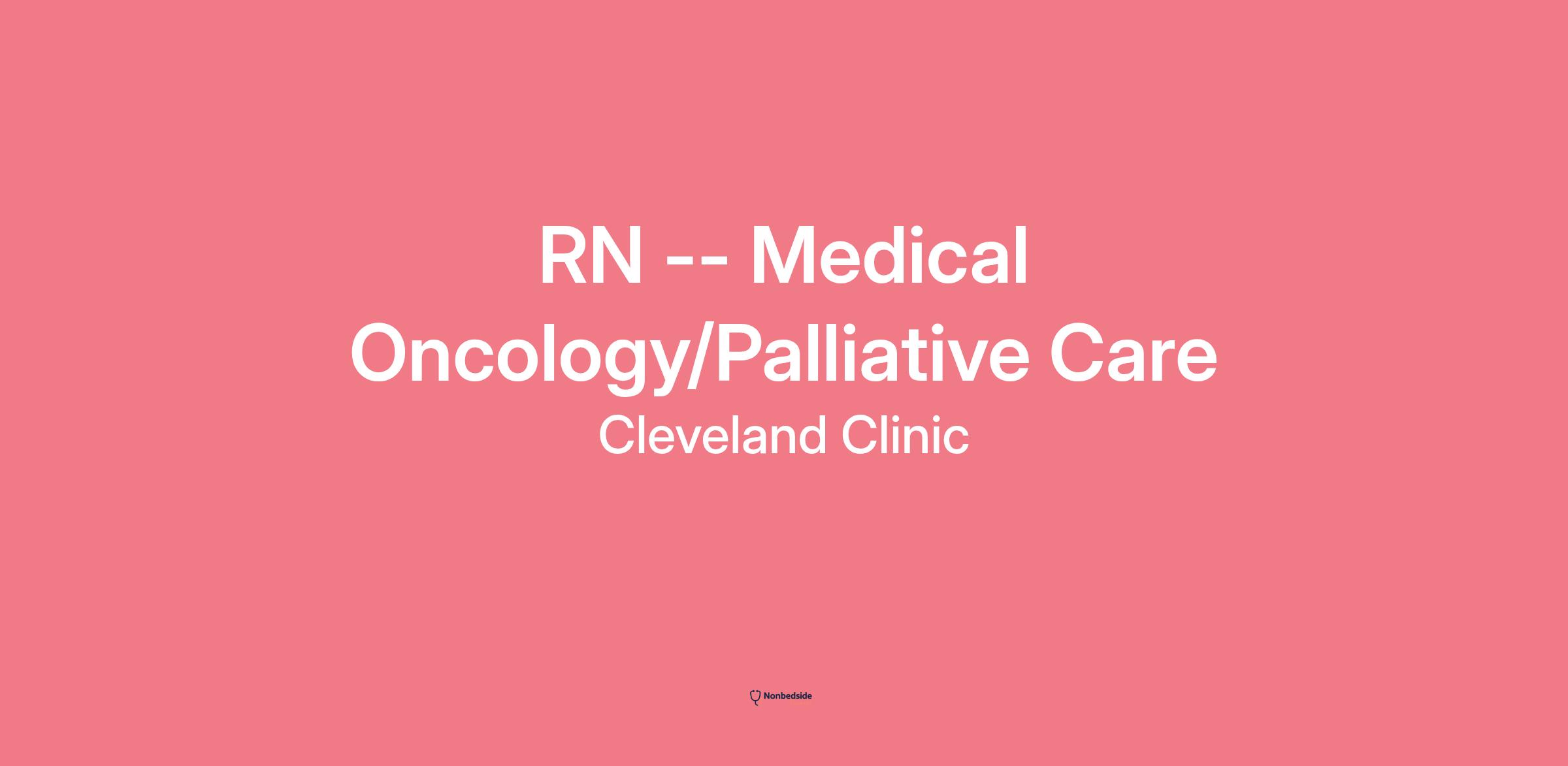 Join to apply for the RN -- Medical Oncology/Palliative Care role at Cleveland Clinic