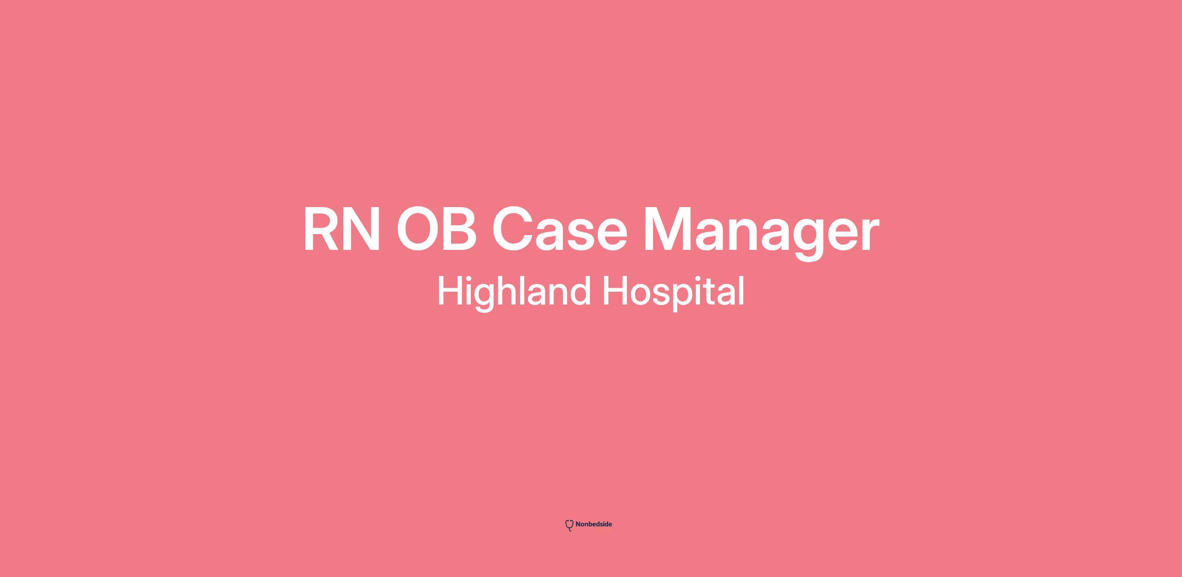 OB RN Care Manager, Highland Women's Health