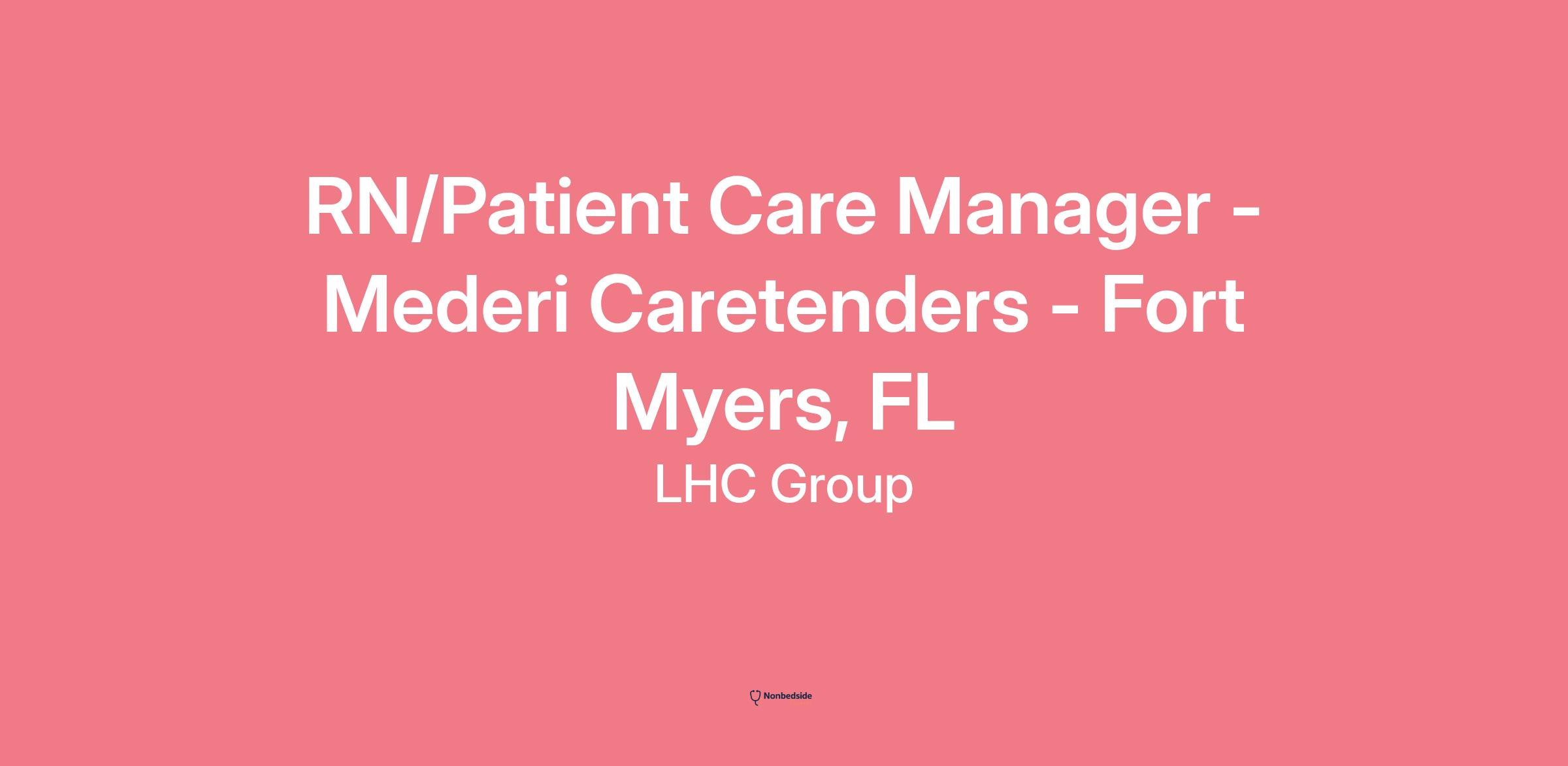 Overview Patient Care Manager, RN – Fort Myers, FL • Full Time • Clinical Operations • Job ID: 2025016742