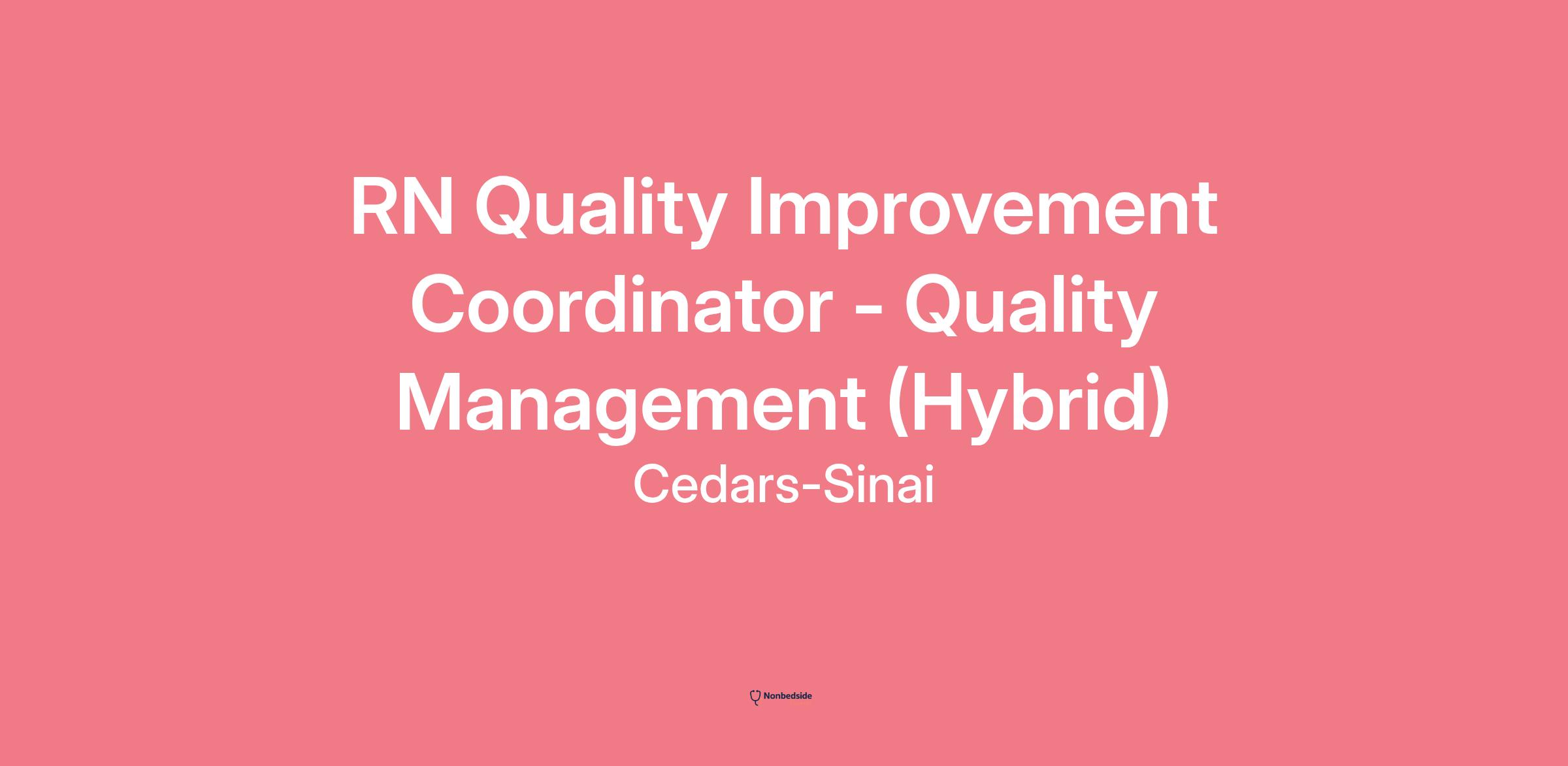 RN Quality Improvement Coordinator - Quality Management (Hybrid)