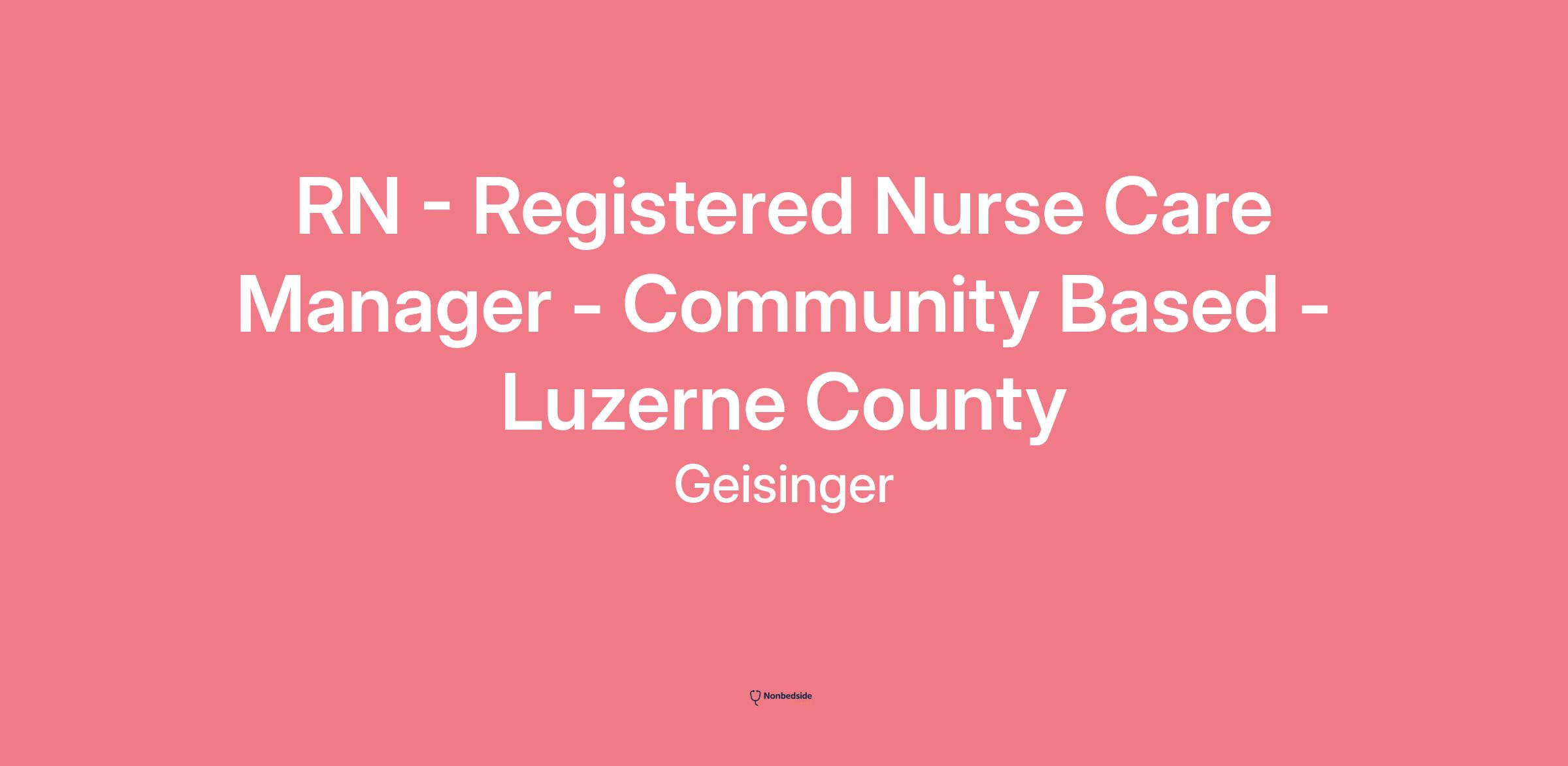 RN - Registered Nurse Care Manager - Geisinger at Home - Community Based - Luzerne County