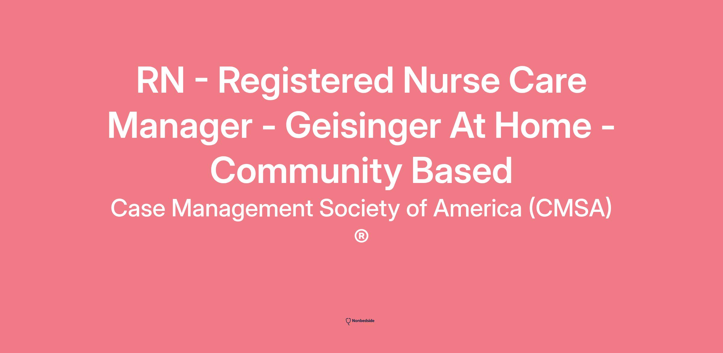 The RN Care Manager in Geisinger at Home works in conjunction with physicians, nurses, inter disciplinary team and others to assess, plan and initiate patient plan of care.