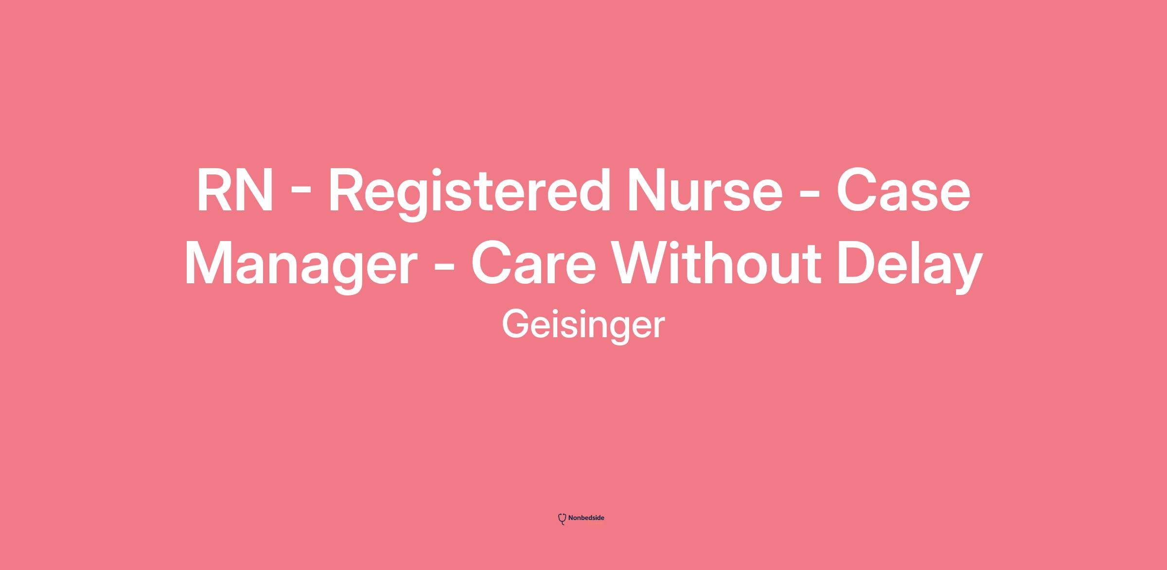 Geisinger is proud to announce a new initiative to support patient care and enhance the professional impact of our RN Case Managers. Geisinger's Care Without Delay (CWD) is an organized program combining all the necessary strategies to support length of stay management and throughput. It aligns the right care, at the right time and in the right place.