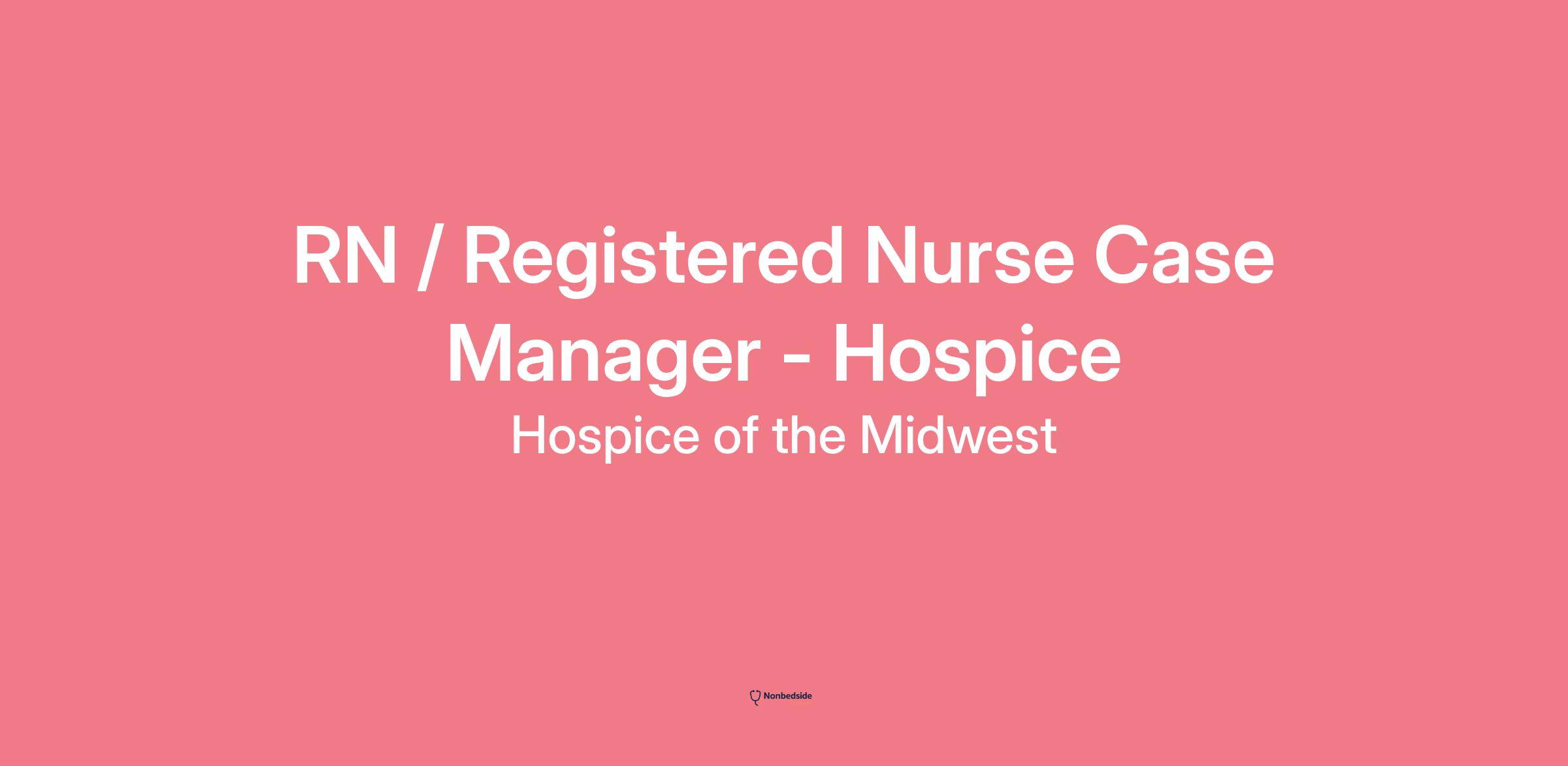 RN / Registered Nurse Case Manager - Hospice RN / Registered Nurse Case Manager - Hospice role at Hospice of the Midwest