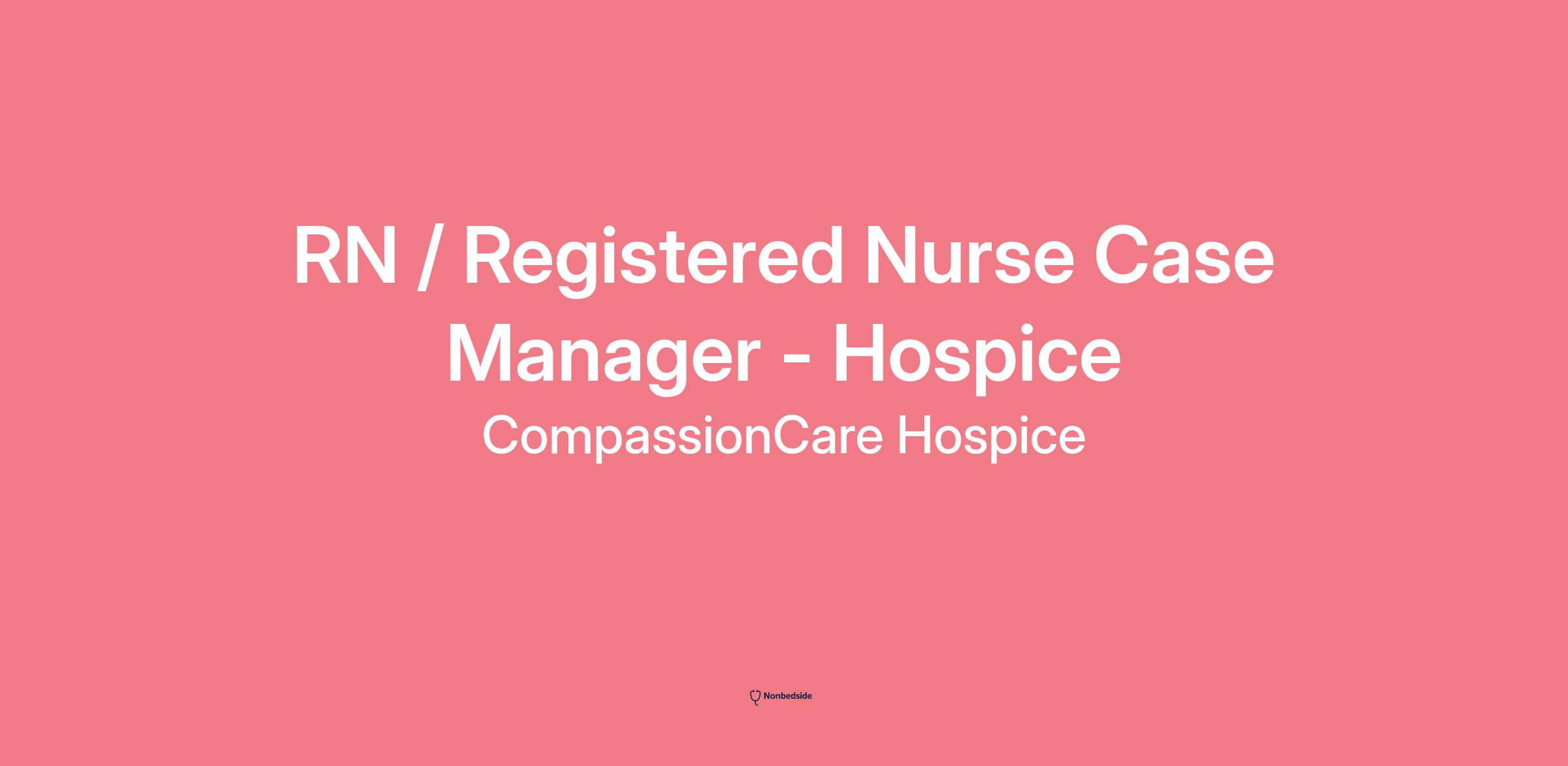 Join to apply for the RN / Registered Nurse Case Manager - Hospice role at CompassionCare Hospice