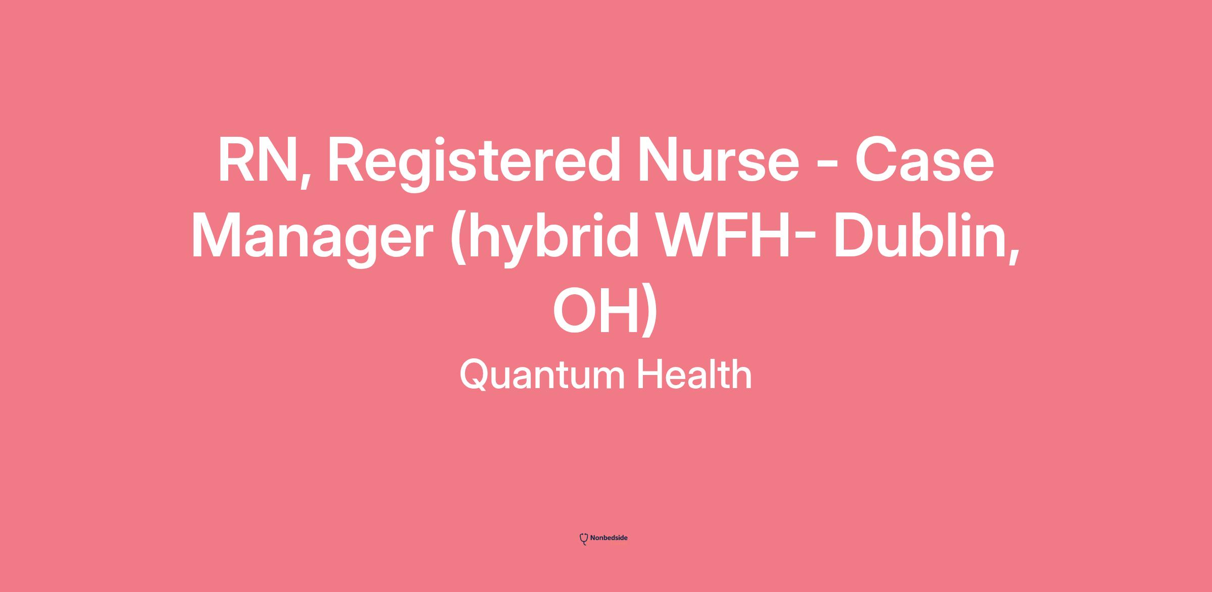 Join to apply for the RN, Registered Nurse - Case Manager (hybrid WFH- Dublin, OH) role at Quantum Health