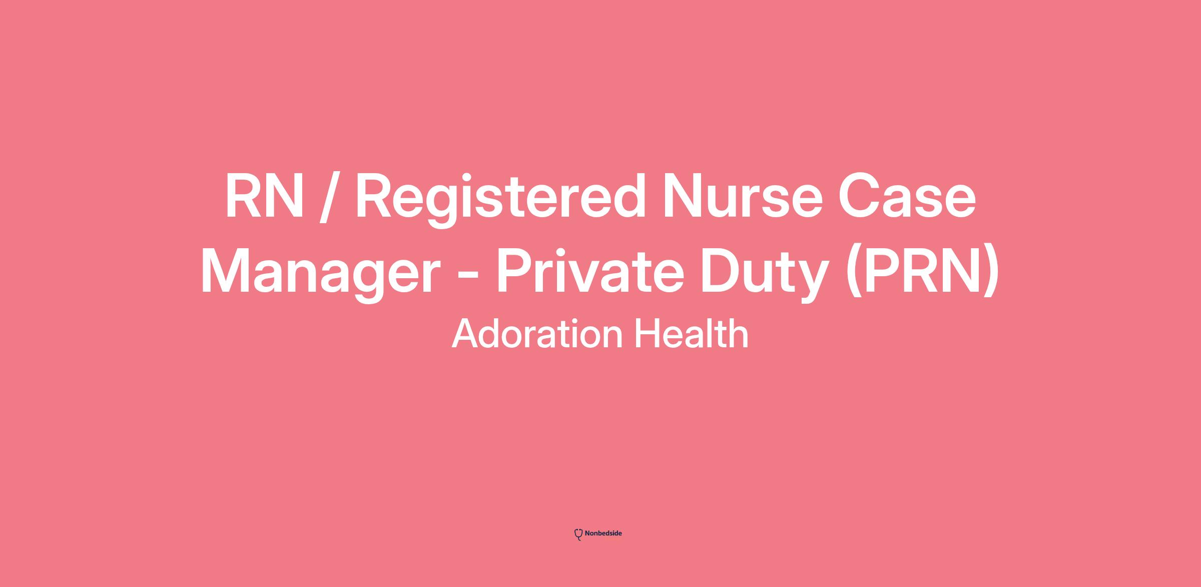 RN / Registered Nurse Case Manager - Private Duty (PRN) Adoration Health is seeking a passionate Private Duty RN Case Manager to join our team in Greeneville/Kingsport/Morristown, TN. This PRN role provides patient-centered, 1:1 home health care with a supportive environment.