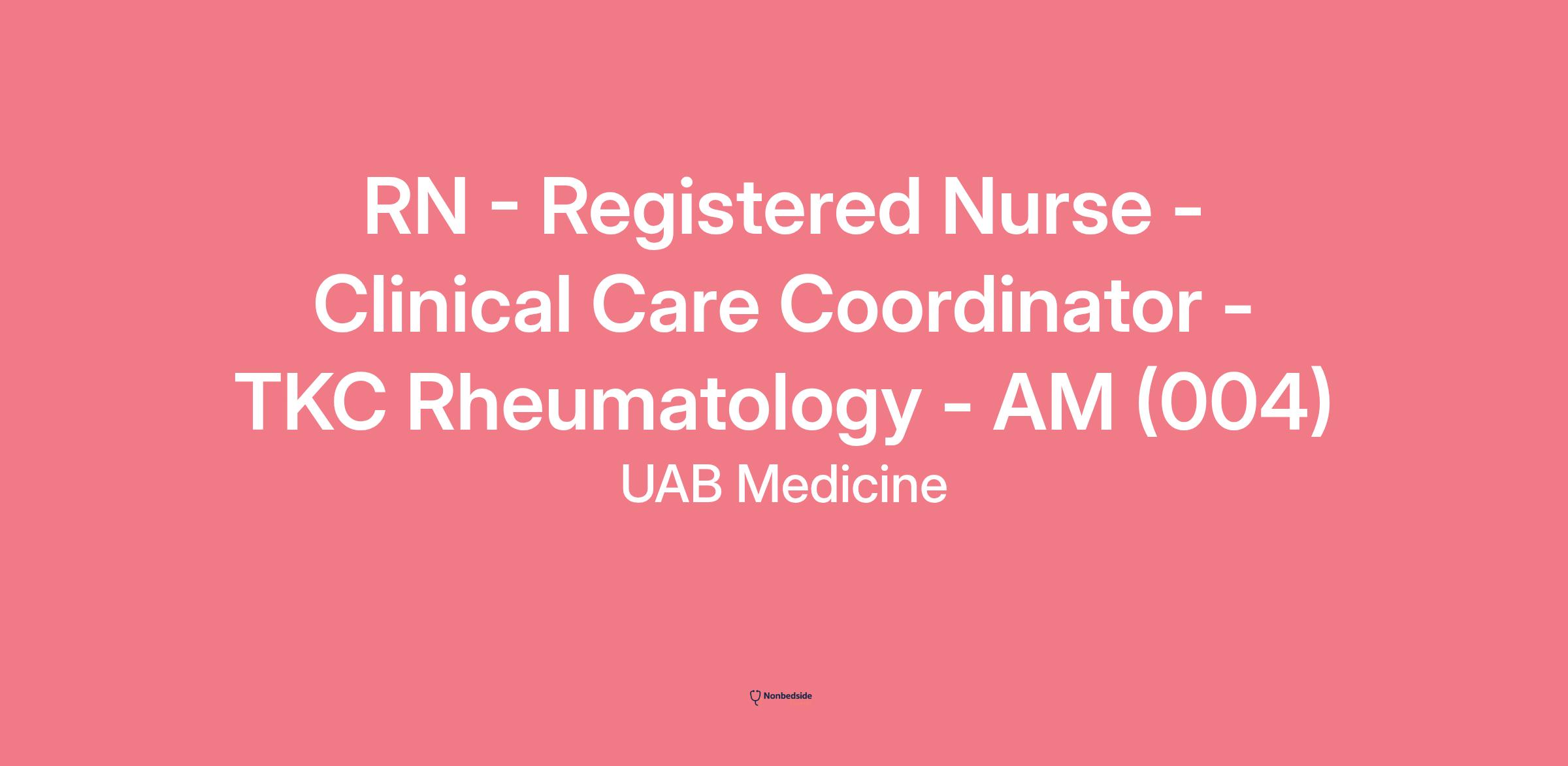 RN - Registered Nurse - Clinical Care Coordinator - TKC Rheumatology - AM (004)