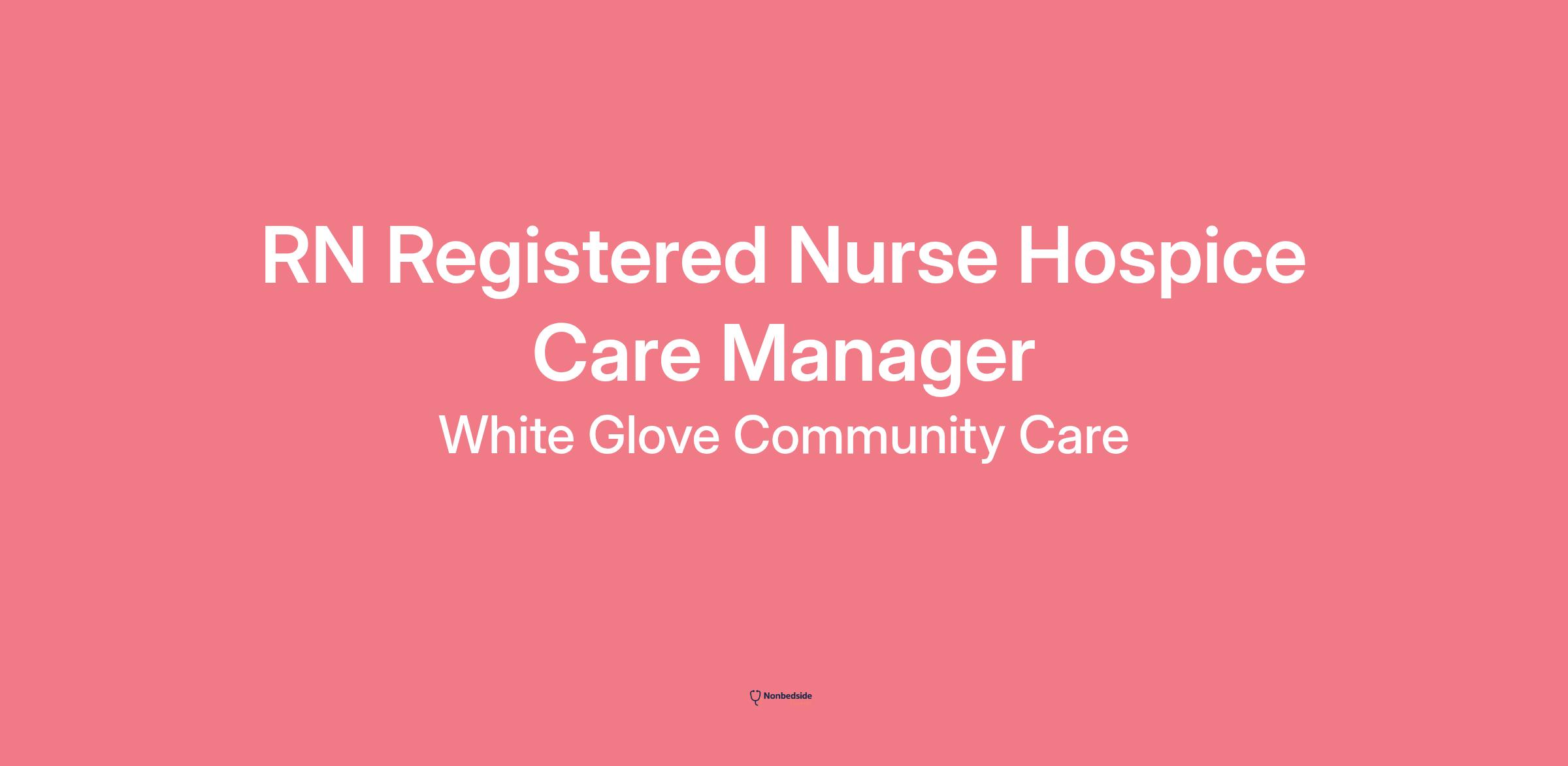 Join to apply for the RN Registered Nurse Hospice Visits/Assessments Quick Hire role at White Glove Community Care .