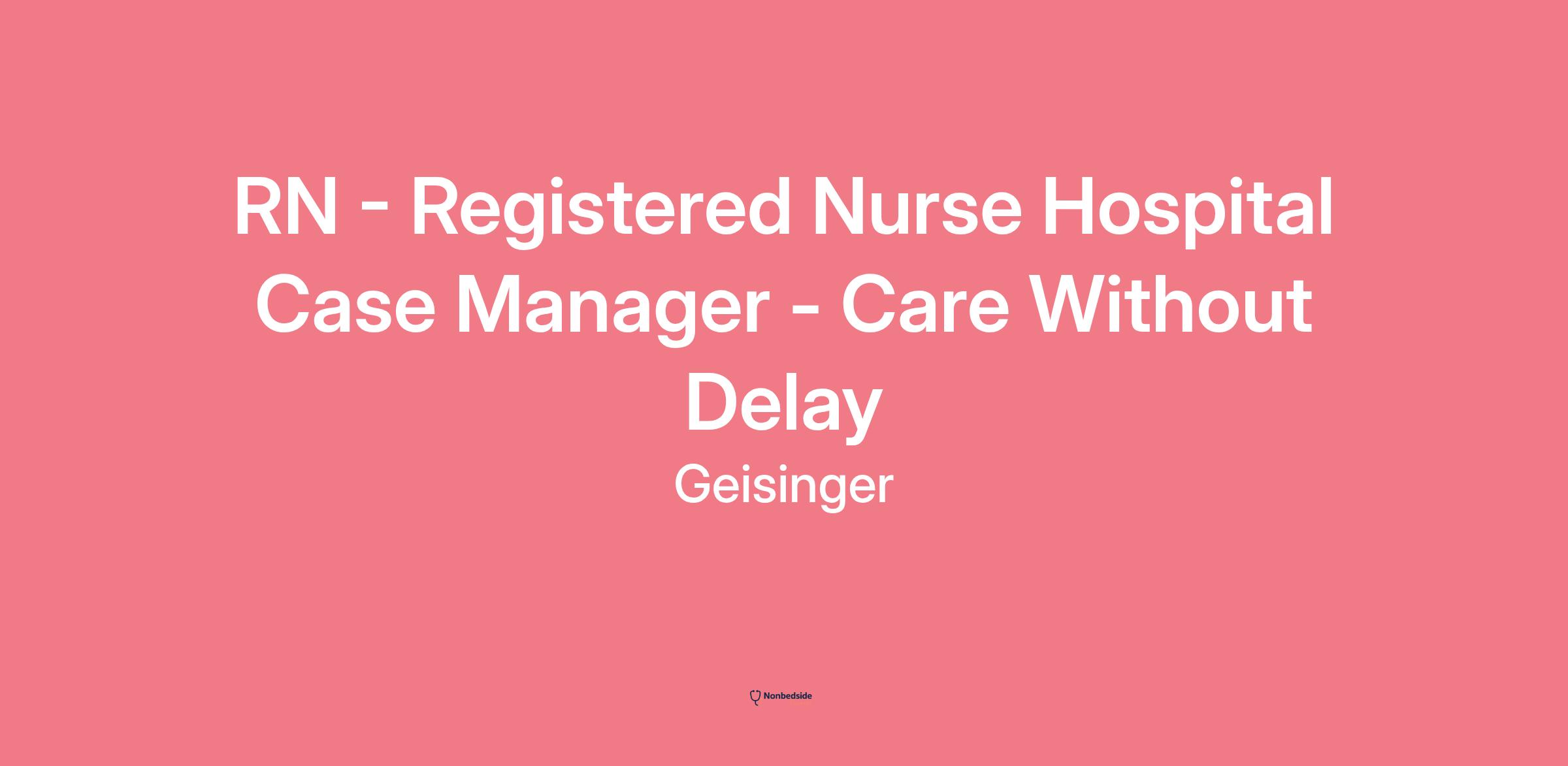 Job Summary: Geisinger is proud to announce a salary increase for RN Hospital Case Managers - making this the perfect time to join us! We’re committed to supporting your success as you’ll play a vital role in ensuring patients receive the right care, at the right time, in the right place. Apply today and become part of a team that’s making a meaningful impact every day.