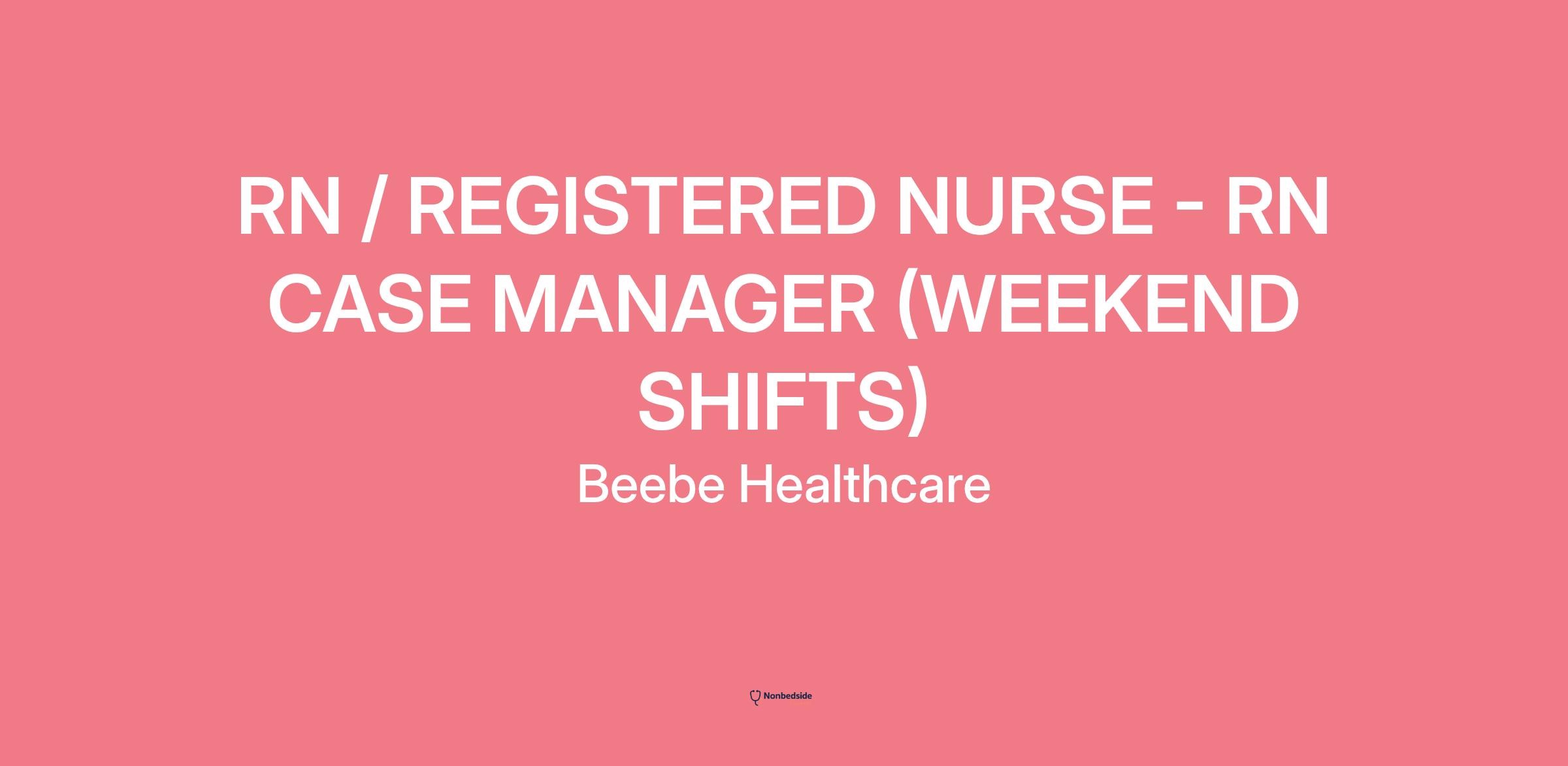 Beebe Healthcare is seeking an experienced RN Case Manager to work weekends (Friday/Saturday/Sunday - 3 / 12 hour shifts)