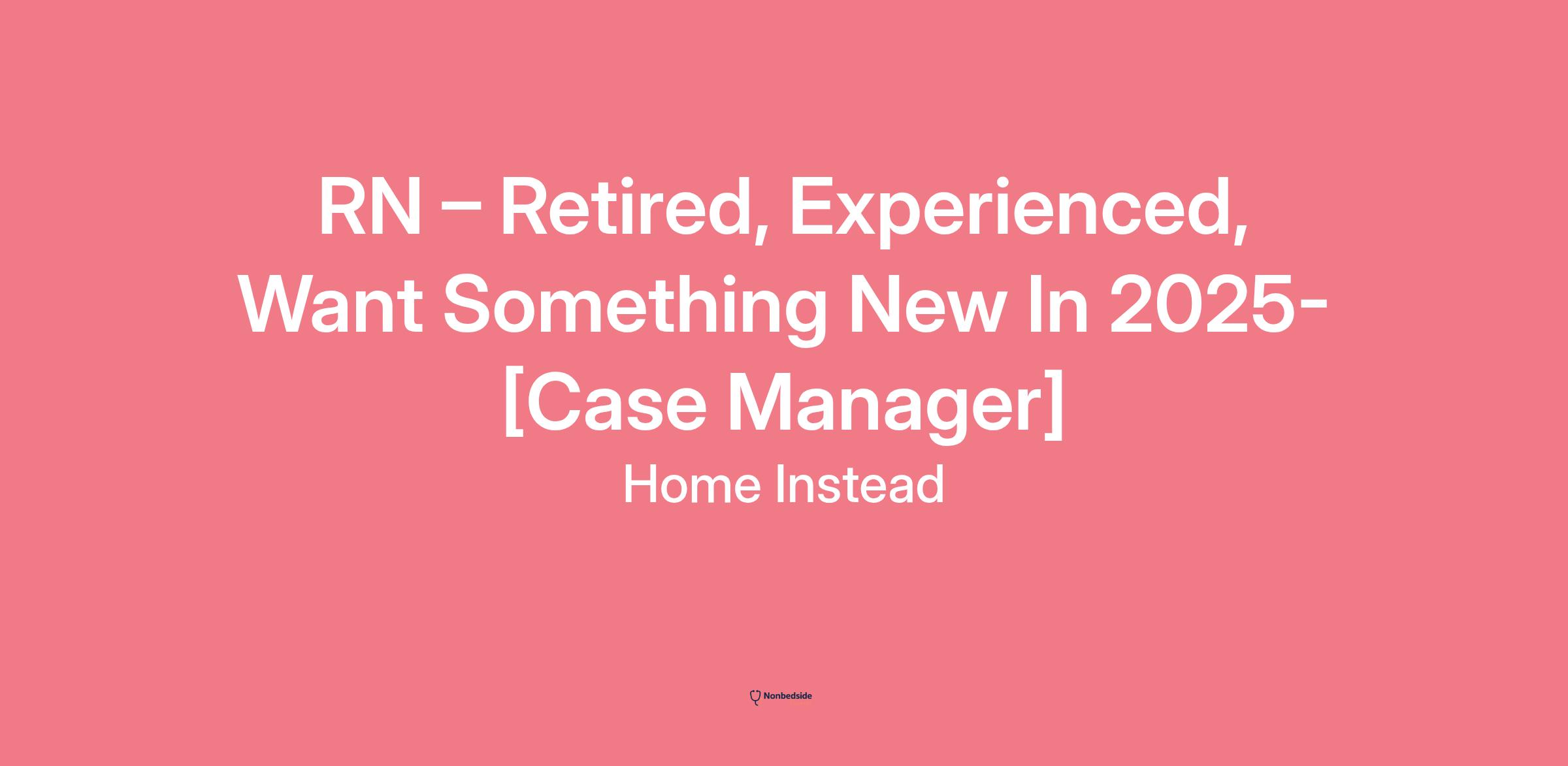 RN – Retired, Experienced, Want Something New In 2025- [Case Manager]